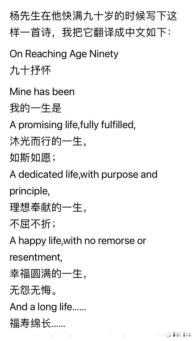 上午十点半还挺好,大家都以为能挺过去,谁知到11点半又不行了,103岁的杨振宁终