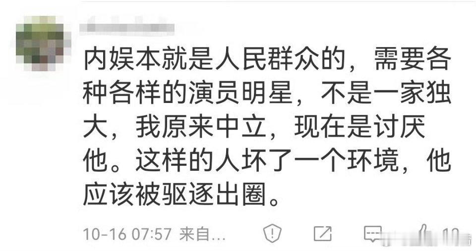 内娱需要真正的好演员,不是声台形表哪哪都不行,我原来中立,现在讨厌戏混子,一颗老鼠屎坏了一锅汤,应该被驱逐出圈。