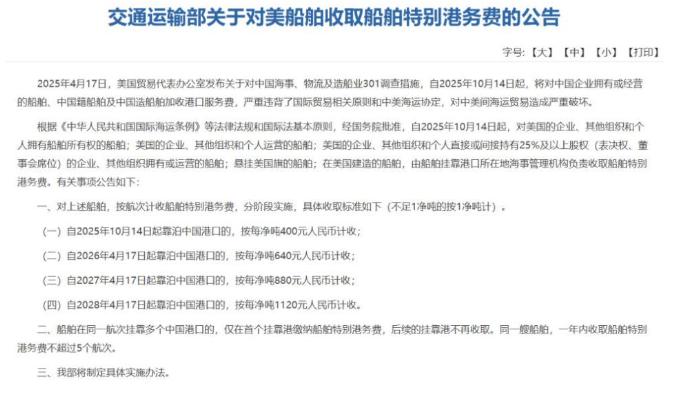 [微风]反制第一天就见效?美邮轮为拒交1167万港务费,取消挂靠中国港口 10 月 14 日中方 “特别港务费” 新规刚生效,美国大洋邮轮 “RIVIERA” 号就来了个急刹车,原定靠泊上海吴淞口的计划说黄就黄,宁肯让旅客在海上改道济州岛,也不愿掏那 1167 万的港务费。 这千万罚单背后,藏着比费率更狠的门道,那张看不见的 “股权穿透网”,才是真正让美方坐不住的关键。 不少人盯着 1167 万这个数字犯嘀咕,其实这笔钱算得明明白白。“RIVIERA” 号净吨位 29175 吨,按新规每净吨 400 元的起步价,刚好算出这个数。 但更让航运公司头疼的是后面的连环招:2026 年费率要涨到 640 元,2028 年直接飙到 1120 元,到时候这艘邮轮单次停靠就得交 3267 万,一年 5 个航次下来更是要掏 1.63 亿。可这还不是最绝的,政策真正的杀招在 “谁该交钱” 的定义上。 以前判断该给谁收费,大多看船挂哪国国旗、在哪造的,这次直接穿透到股权层面。交通运输部的文件写得清清楚楚,只要是美国企业直接持有、运营,或者参股比例达到 25% 以上的船舶,不管挂什么旗都得交钱。 这一下就把网撒到了全球,3000 多艘和美国沾边的船都被纳入范围,占了全球近 3% 的运力。之前有些公司想靠换船旗、搞离岸公司避税,现在这套完全不管用了,股权链条藏得再深也能被揪出来。 这招精准打击的效果来得飞快。10 月 14 到 16 日三天,原计划停靠中国港口的 8 艘美籍或美资邮轮里,5 艘直接改道,2 艘在海上飘着等消息,只有 1 艘硬着头皮交了钱。旅行社那边更乱,退团人数超 1.2 万,单人最高退了 6 万 8,有家上市旅企股价当天就跌了 7%。 但不是所有公司都敢硬扛,美森轮船就选了乖乖交钱,旗下 “MATSON WAIKIKI” 号在上海港掏了 1209 万,“MANUKAI” 号在宁波港交了 446 万,毕竟它的中美快航业务离不了中国市场,只能认栽。 其实中方这步棋早有铺垫,毕竟是美方先开的头。10 月 14 日当天,美国刚对中国船舶实施《涉华船舶停靠费用调整令》,按每净吨 300 美元收钱,一艘 5 万吨级货轮单次就得交 1.08 亿。 中方的反制完全是对等操作,甚至还留了余地:中国造的船、空载来修的船都能豁免。这心思很明显,不针对第三方,也不搞一刀切,既守住了底线,又给造船、修船等产业链留了机会,等于悄悄拉了一把国内制造业。 现在行业里已经乱成了一锅粥。马士基、赫伯罗特这类巨头开始调航线,让涉美资的船绕去韩国釜山中转;德翔海运干脆退出美西航线,直接止损;太平洋航运更绝,让美国背景的非执行董事辞职,想从股权上切割关系。 日本的航运公司也在偷偷评估,考虑减持美资合资项目的股份,就怕被这张穿透网捞进去。 这场博弈才刚开场,1167 万的港务费只是个引子。美方要是不松口,2028 年的费率还得涨,到时候不管是邮轮还是货轮,成本压力只会更大。那些想靠股权腾挪躲过去的招数,真能长期管用吗?你觉得这场港口费拉锯战,最后会以怎样的方式收场? 信源:中国船舶报:规避?反制!中国船舶开启“正当防卫”
