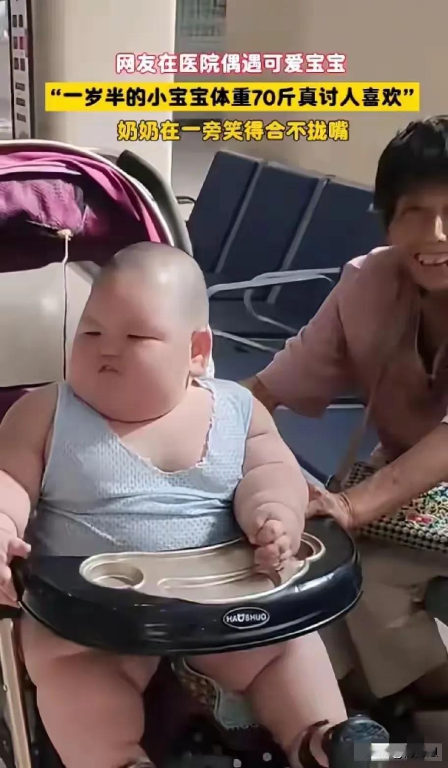 都不考虑孩子的健康吗? 有网友在医院偶遇一个胖宝,一岁半70斤,奶奶在旁边笑的合