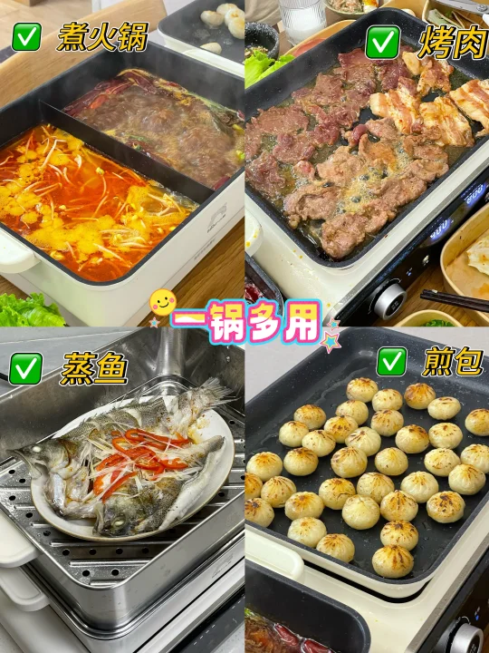 最近刷到了姜妍的酸汤火锅,看着超级下饭,忍不住来复刻一下,顺便把宝宝爱吃的清蒸鱼、老公爱吃的拇指生煎包全都安排上了✌️ 酸汤火锅教程: 1️⃣:油热放入姜片炒香,加入适量剁椒炒香,放入番茄块翻炒出沙 2️⃣:加入红酸汤和葱段翻炒一会儿,加入清水熬煮一会儿,再根据口味加盐即可 这次用的是新入手的小熊叠叠锅3.0,烤涮蒸煎焖焗一锅全能搞定,简直不要太方便!而且吃完还能放进洗碗机清洗,直接解放双手