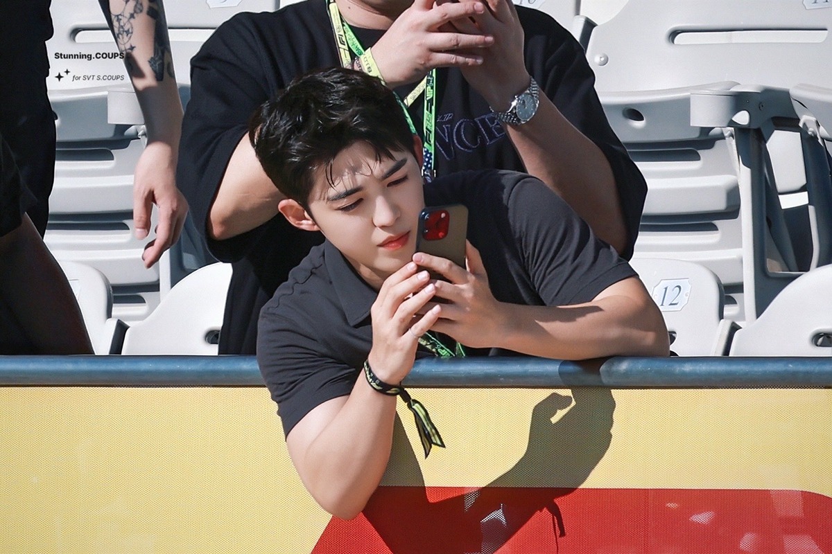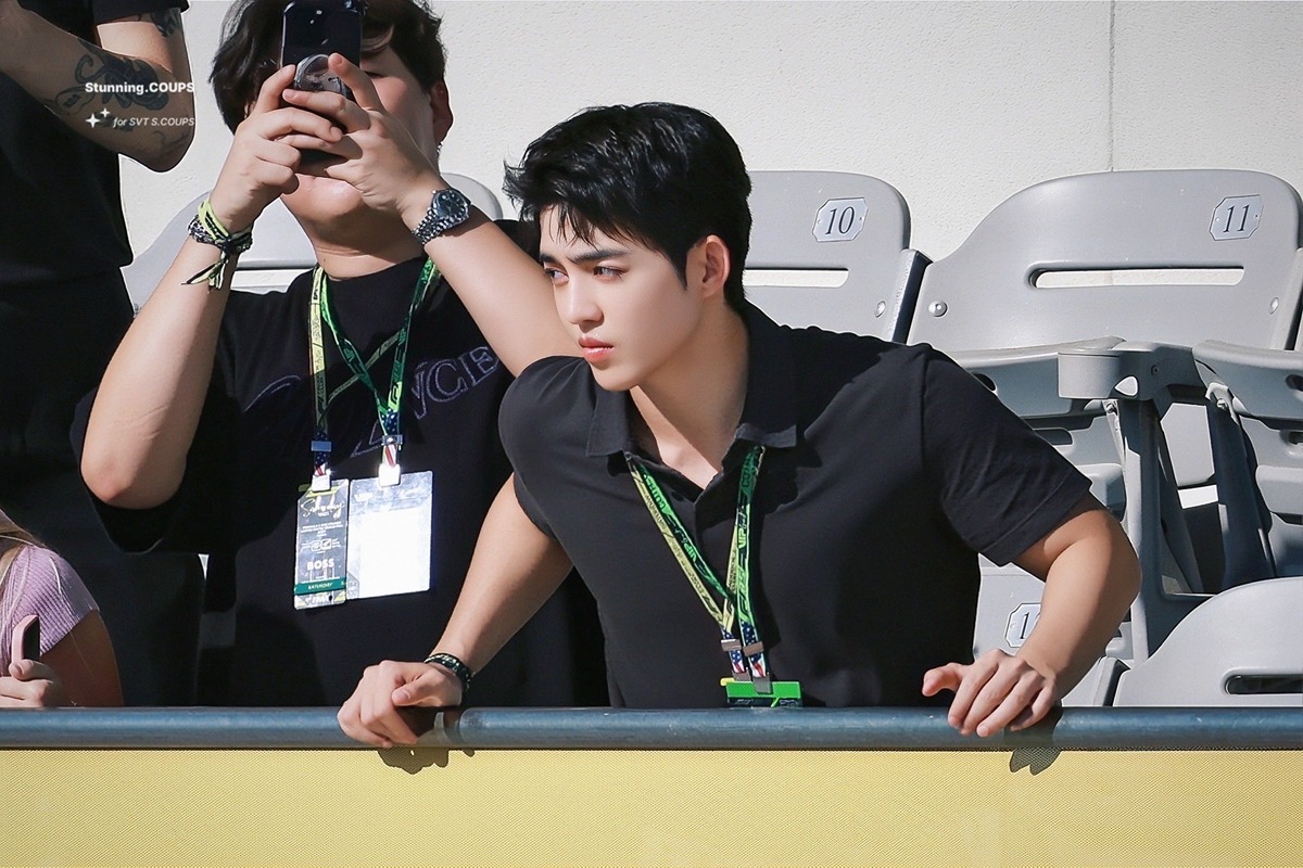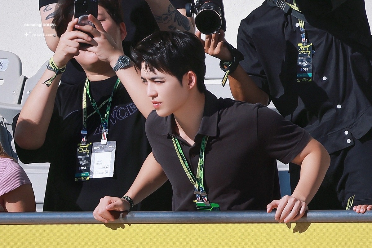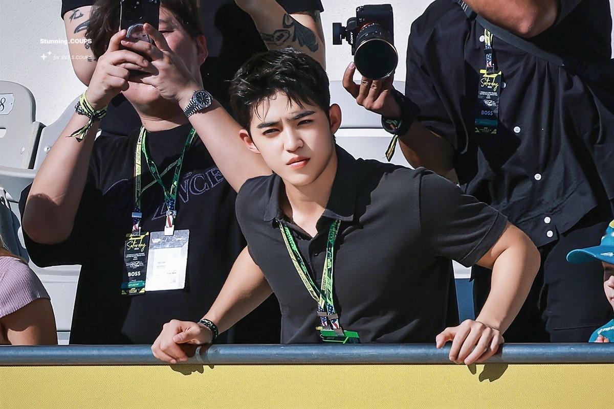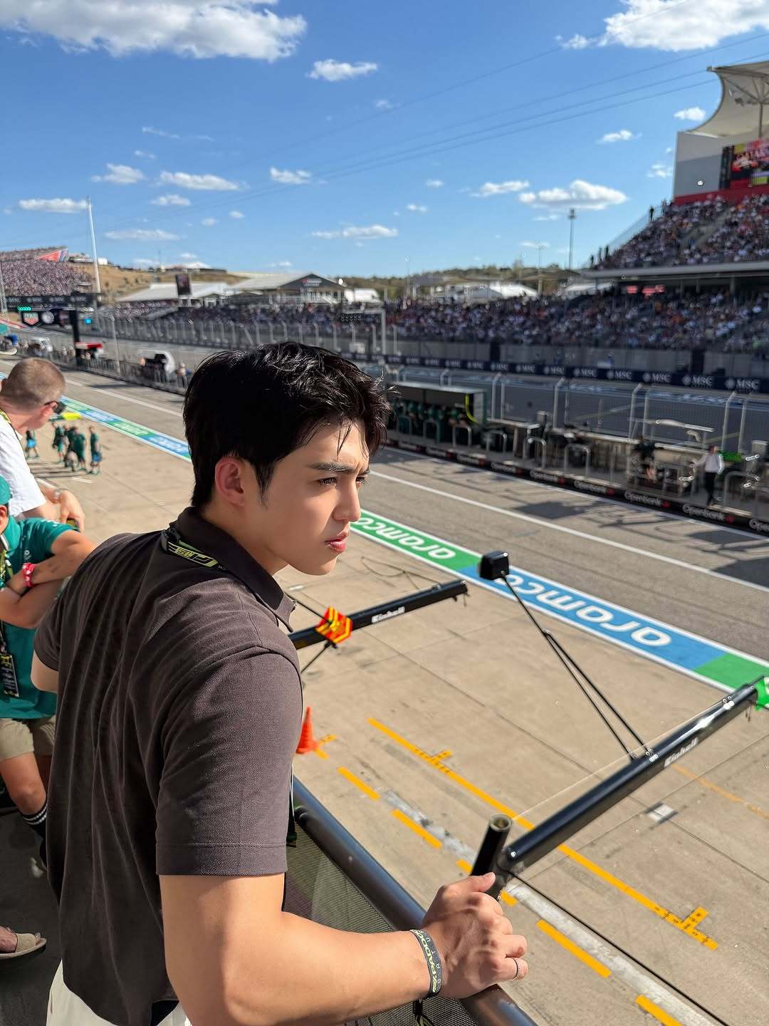 在世界方程式赛车F1赛场被拍到的崔胜澈&ins照片,像车队老板一样的S.CO