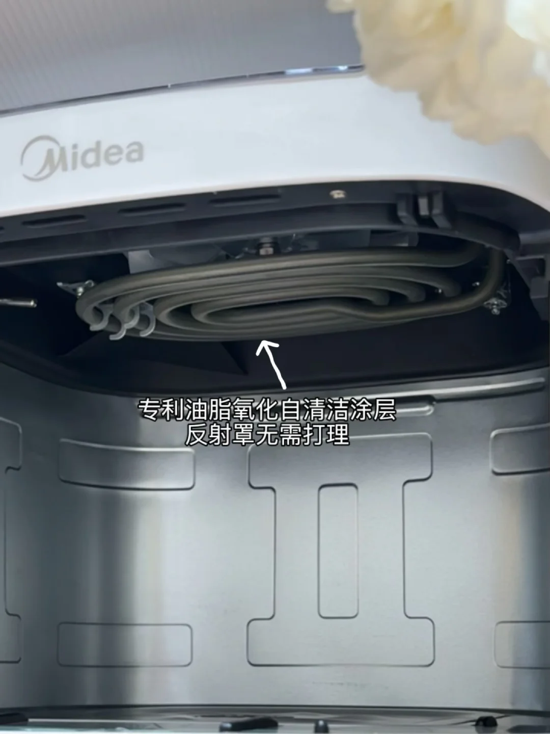 全金属内腔+炸桶材质是0氟天然陶瓷的,能避免高频使用下,特氟龙析出有害物质,👶🏻吃起来更安心。清洁起来也特别省心,专利油脂氧化自清洁涂层技术(专利号ZL 2023 2 3432036.0)能一边烹饪一边分解反射罩上面的油污,再也不怕清洁难题了