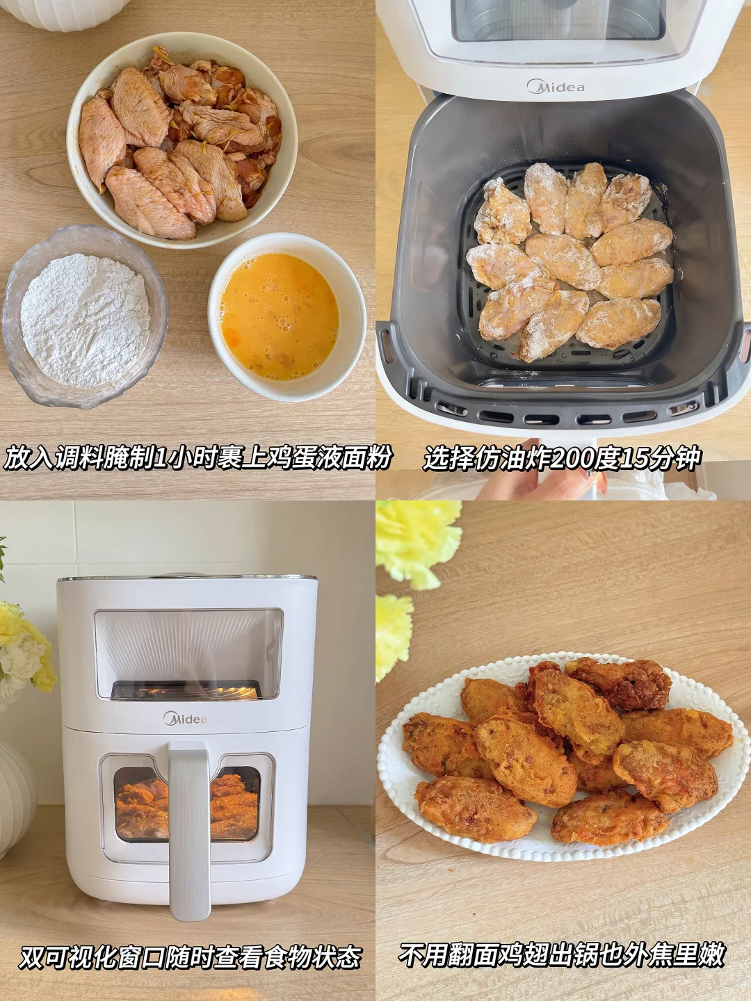 做的过程中还能随时掌握食物状态,双视角可视窗口,食物熟度轻松可见,再也不怕翻车啦❌;用它做一份我喜欢吃的脆皮椒盐鸡翅🍗,外酥里嫩吃起来口感完全不输外面买的,关键低脂少油,身材管理期的姐妹也可以放心大口吃肉!