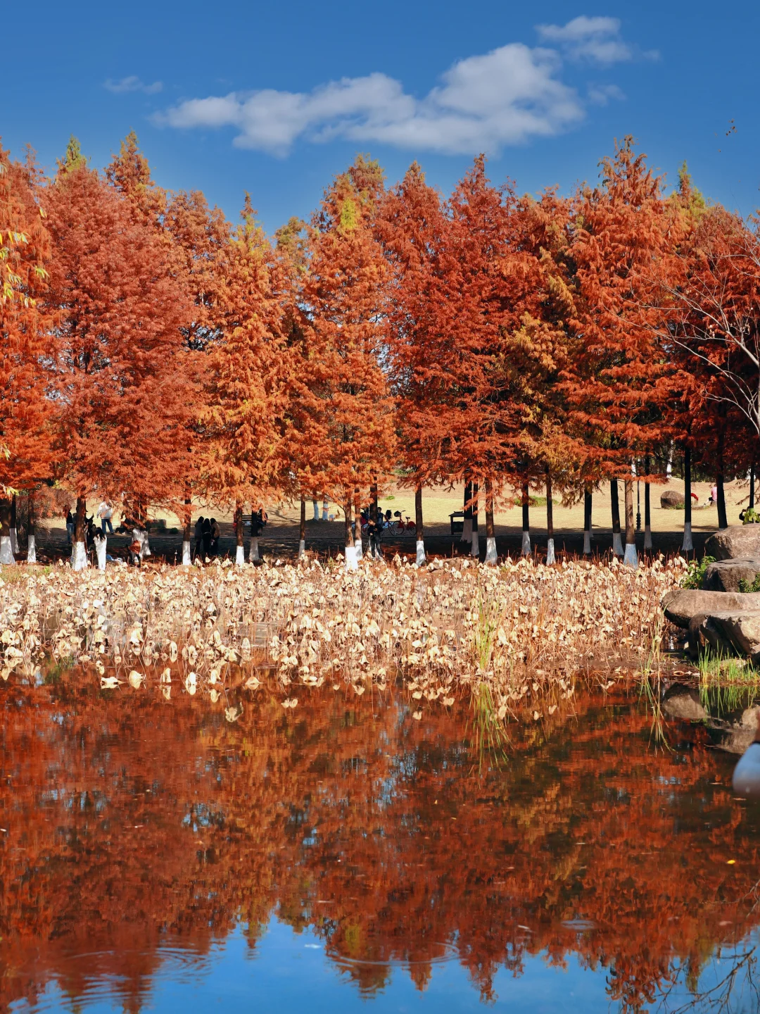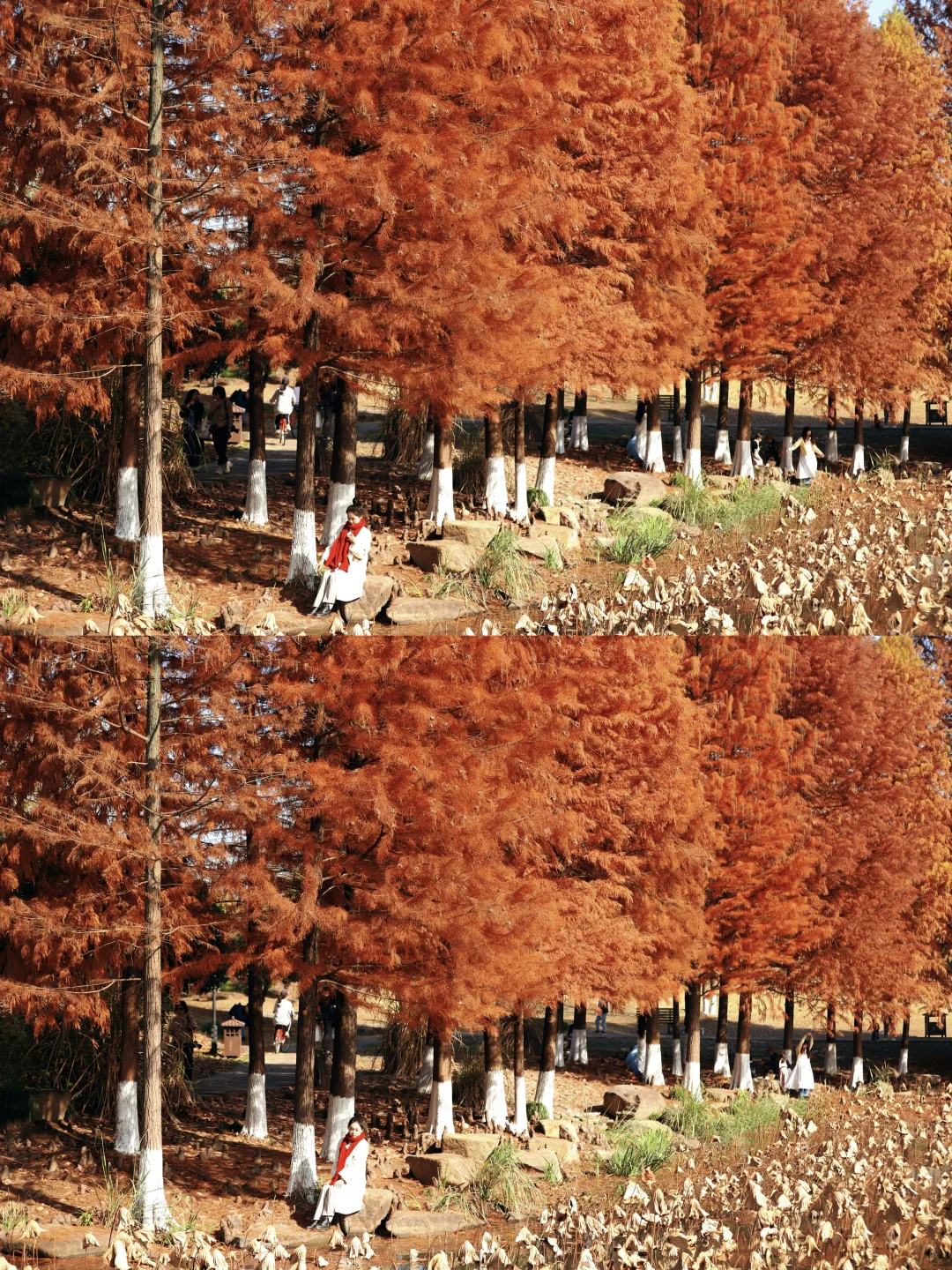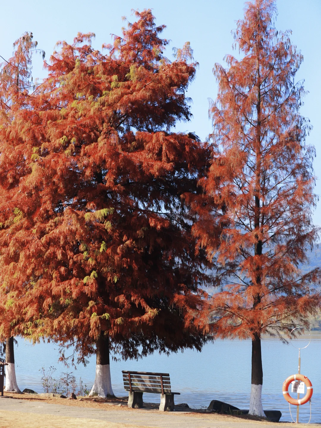 ✔️导航到📍湘湖剪波桥,就可以看到大片红杉木,往前走就可以看到杭州小洱海啦