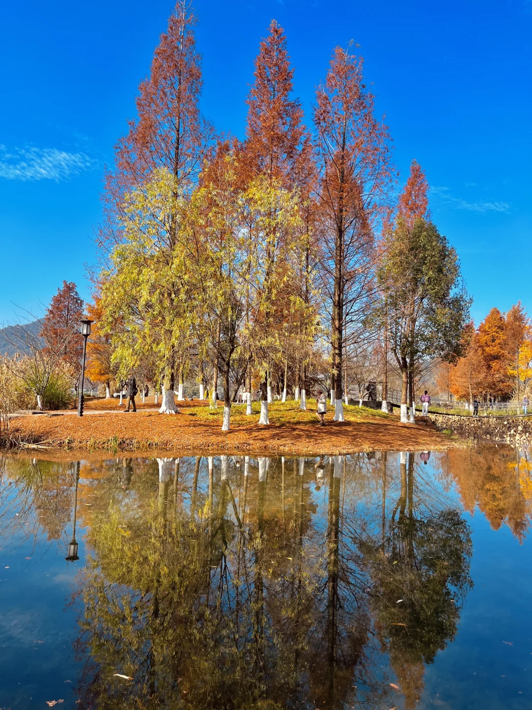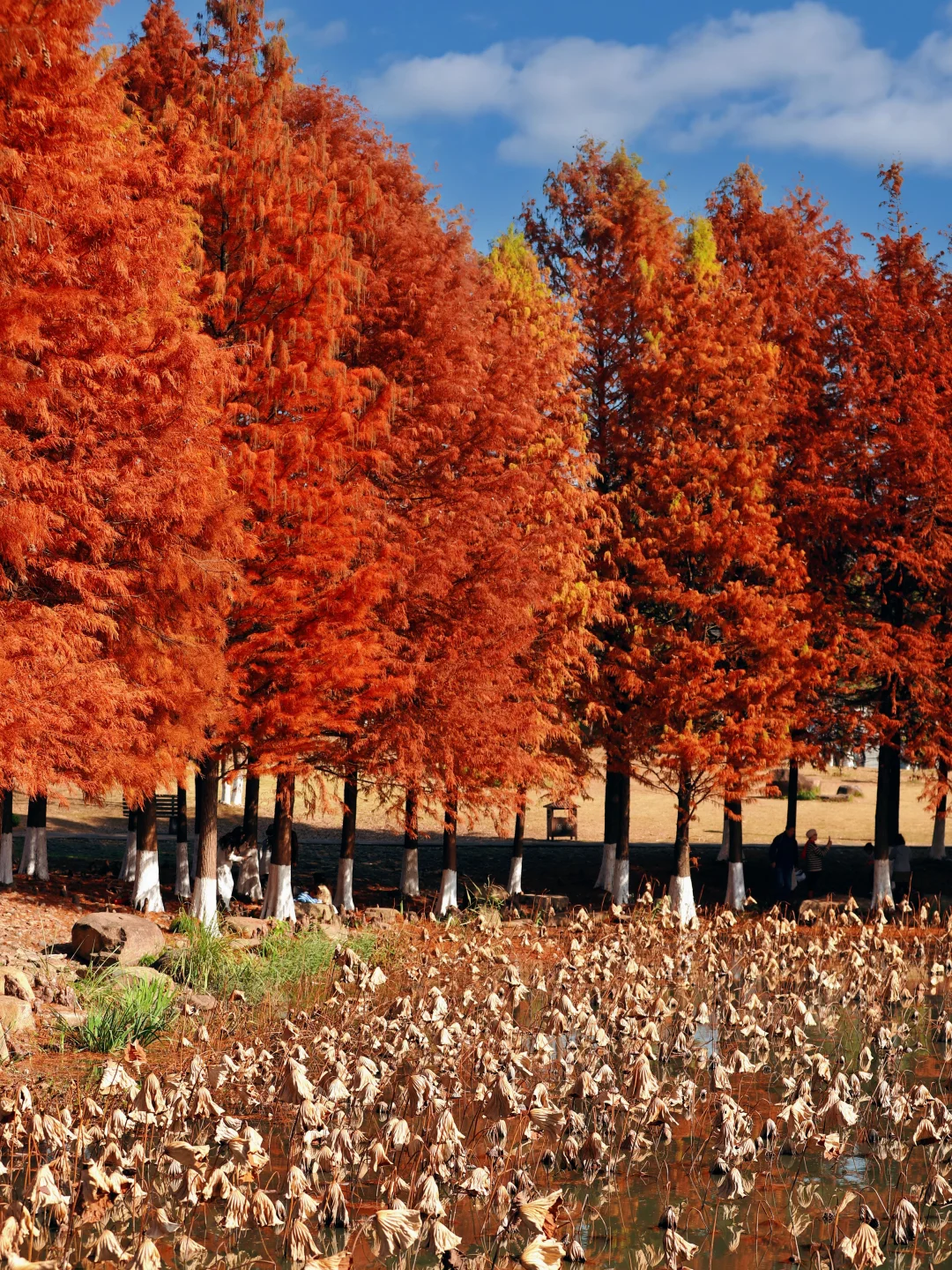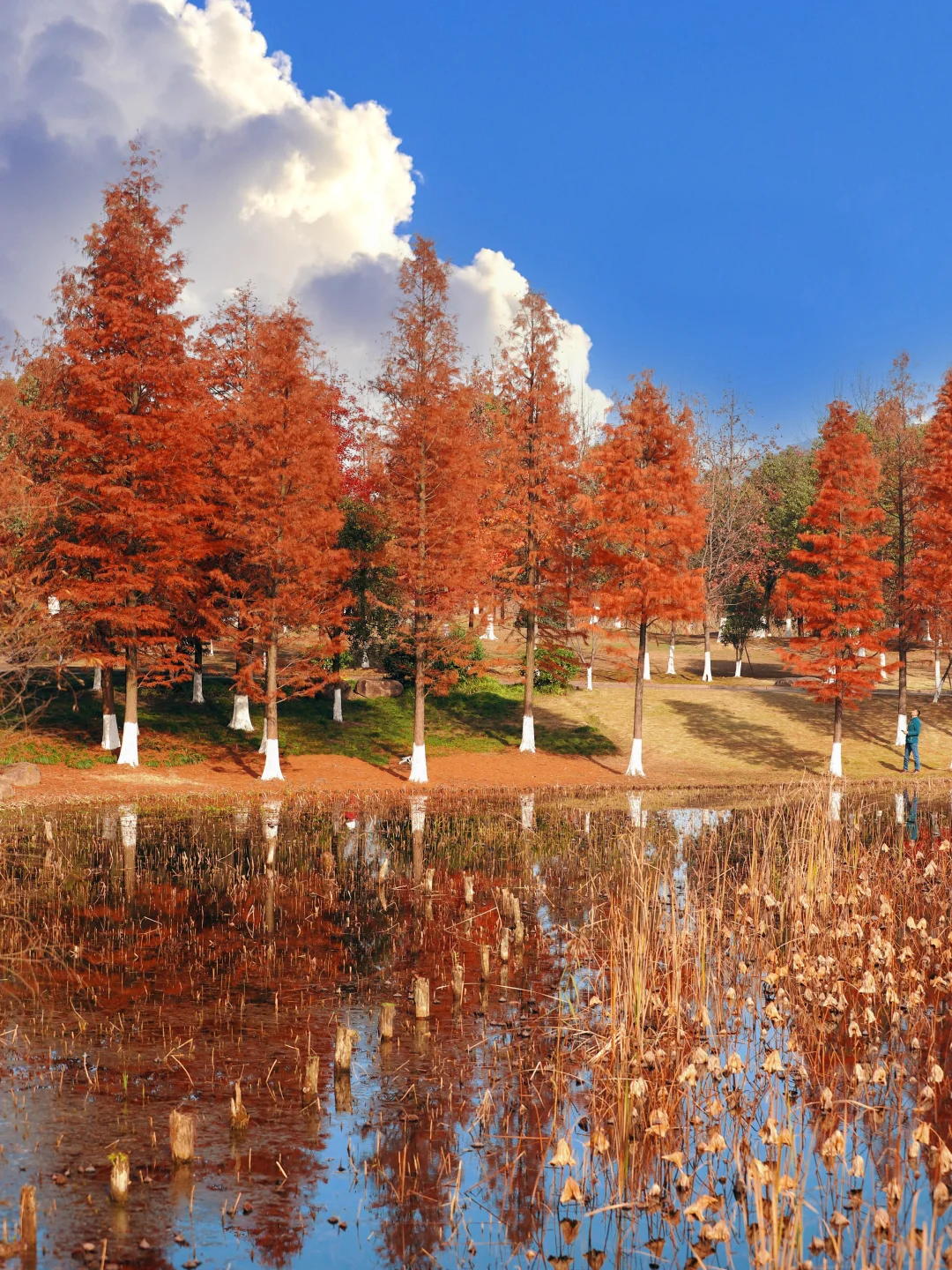 ✔️导航到📍湘湖剪波桥,就可以看到大片红杉木,往前走就可以看到杭州小洱海啦