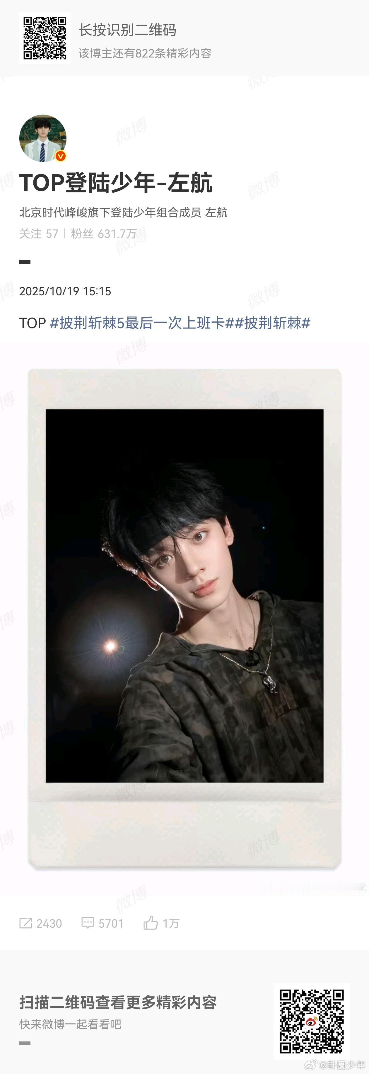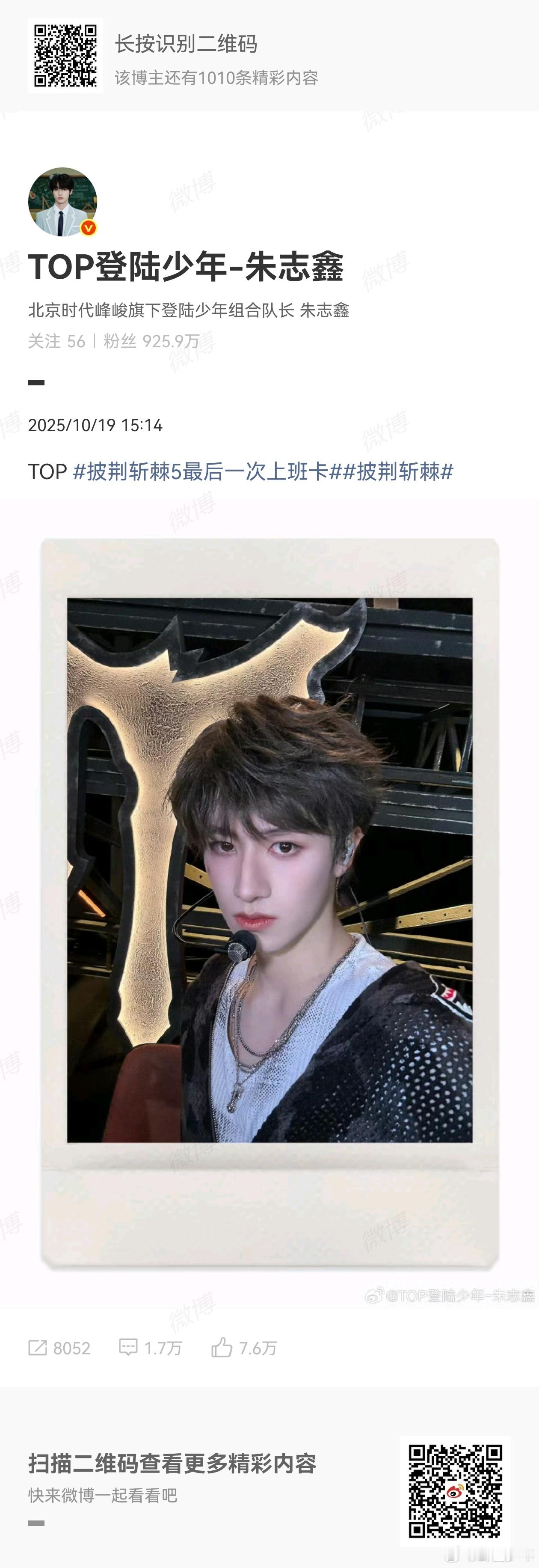 登陆少年全员告别披荆斩棘5登陆少年披荆斩棘5全员下班 谁被登陆少年的告别戳中泪点又燃起期待!朱志鑫、张泽禹、张极、左航、苏新皓每一次打卡都是成长的见证,最后一次上班卡结束,坐等他们用收尾舞台惊艳全场,少年们永远值得!