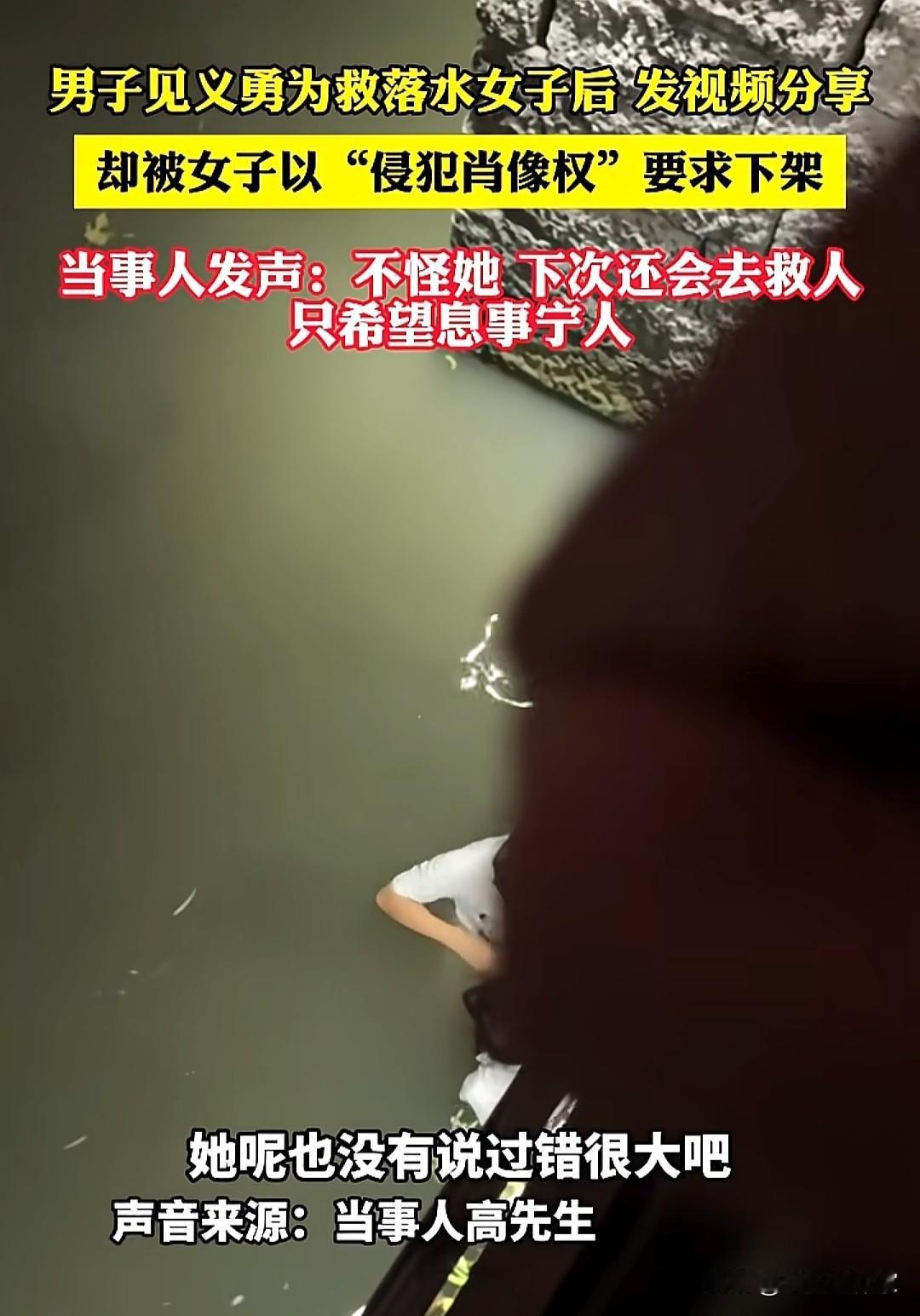 这次的事情你们怎么看? 10月14日晚,浙江杭州拱墅区运河边,男子高先生路过时发现一名女子落水,其在水中挣扎、多次呛水。高先生发现后未曾犹豫,直接翻越栏杆跳入冰冷的河水中,将女子拖拽至岸边,成功将女子救起。因河水中布满砂石,高先生救人时脚部被碎石划伤,随身的物品包括手机和钱包遗失,事后自行去医院就医并打了破伤风。据说被救的女子来不及道谢就离开了,后面也不曾主动联系高先生。 高先生认为自己是第一次救人,希望记录经过并获得认可,次日将路人拍摄的救人视频,视频中没有将人脸进行打码,就把视频发布在了网络上。这个社会是充满正义感的,这个视频发布在网络上后被相关的人员看到了,被救女子主动联系到高先生要求删除视频,女孩认为视频侵犯了自己的肖像权。高先生并未对此进行回应,平台就因女孩的举报下架了相关视频。高先生认为视频中女子面部视频模糊,无法识别,对女孩这种无感谢、直接举报的行为感到有点寒心。于是就将视频重新编辑,对面部进行打码后重新发布在网络,并对视频进行了配文。 视频在网络上也引起了网友的热议,有网友认为女子应该要给高先生表示感谢,认为救命之恩大于肖像权;也有网友认为确实被救女子也有肖像权,也许别人确实不想自己被曝光,只是女孩的沟通方式有所欠缺。 高先生在最新回应中表示“不怪女孩,她也没错”,希望能够“息事宁人”,同时也表示下次遇到类似情况还会救人,但不会再发视频。目前高先生打码后的视频还在平台上,评论区支持高先生的网友比较多。我想说,这种是属于“善意与隐私边界”的讨论,我们也不能强制被救者能够学会感恩,但救人者确实是好样的,但同时也是需要尊重被救者,也许别人不想自己被曝光。 你们认为呢? 落水事件 浙江落水 杭州夫妻跳河 杭州跳河 台州落水者 杭州大运河救人 萧山女子落水 台州落水事故