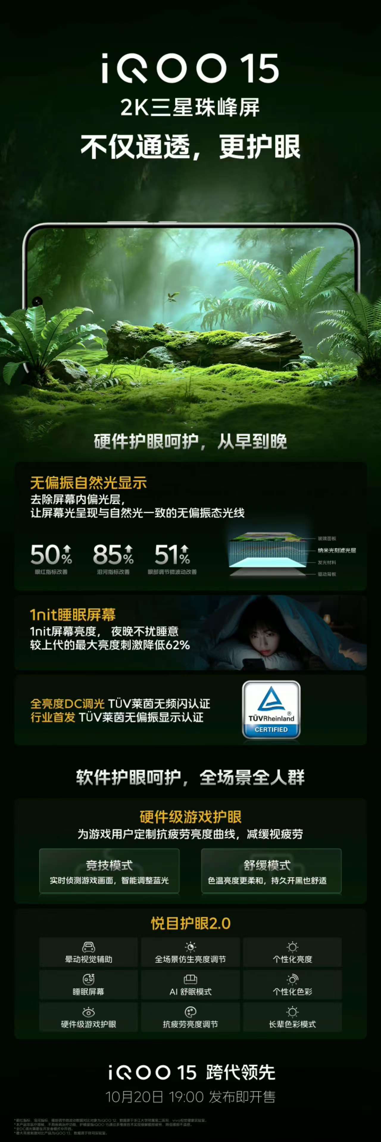 酷客们!这次iQOO 15发布会将邀请Clearlove、Fly等四大电竞传奇同台,悬念十足,不知道他们会擦出什么样的火花名场面呢?性能方面,iQOO 15采用第五代骁龙8至尊版芯片+Monster超核引擎释放强劲实力,而自研电竞芯片Q3能实现全场景光追和超分超帧,硬件级2K+144才是游戏王道,堪称下半年最强电竞性能旗舰。