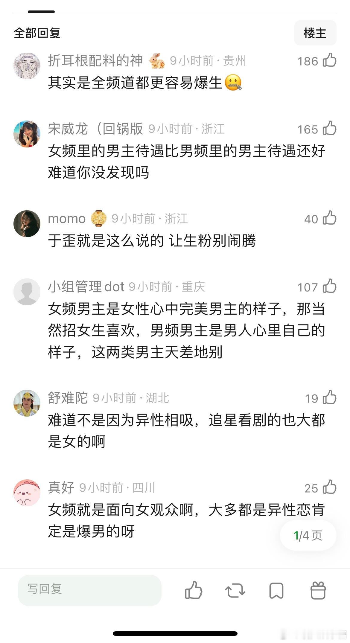 感觉女频更容易爆🥜,看女频的时候就会觉得男主挺有魅力挺苏的 但是他们开始演男频的时候就没有魅力了…