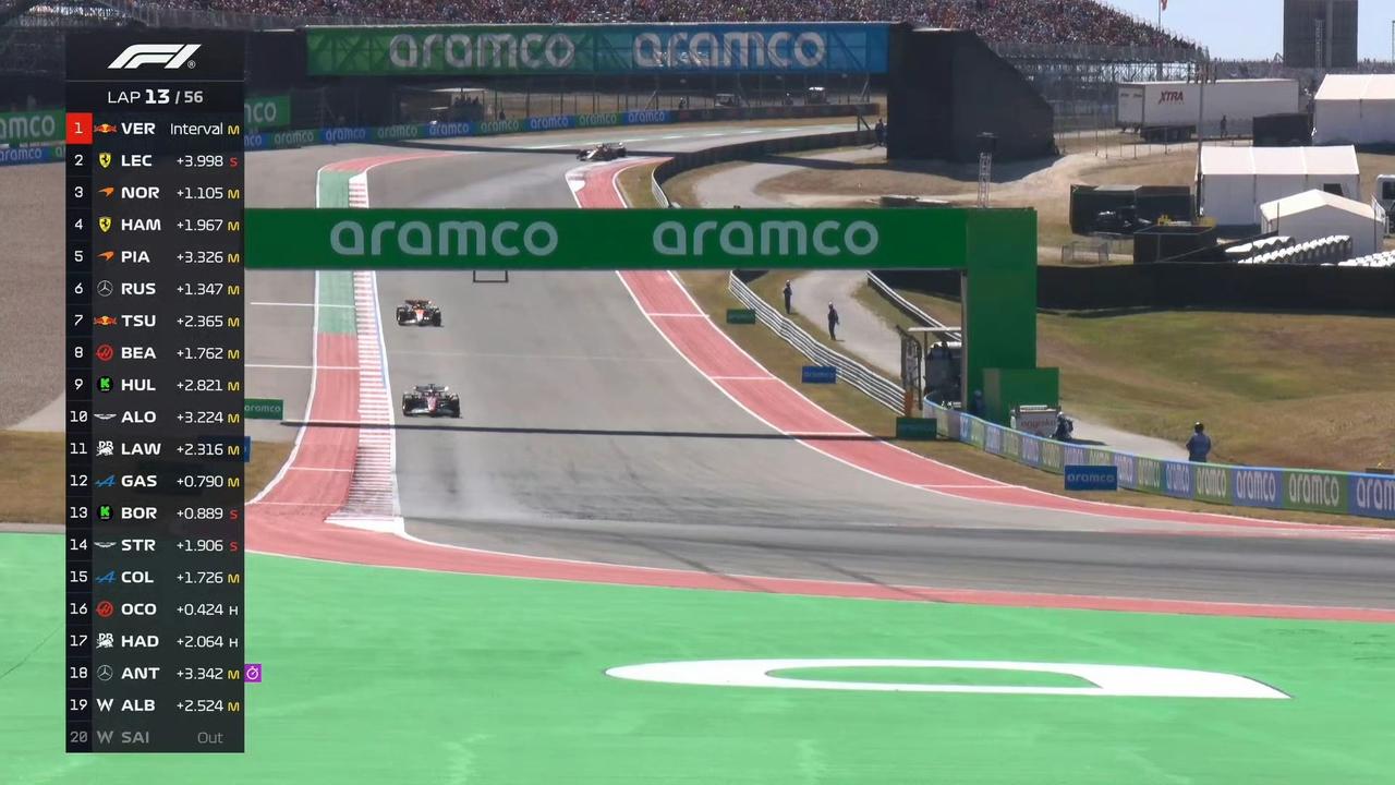 2025F1美国大奖赛7/56,塞恩斯和安东内利发生碰撞,引发虚拟安全车。塞恩斯