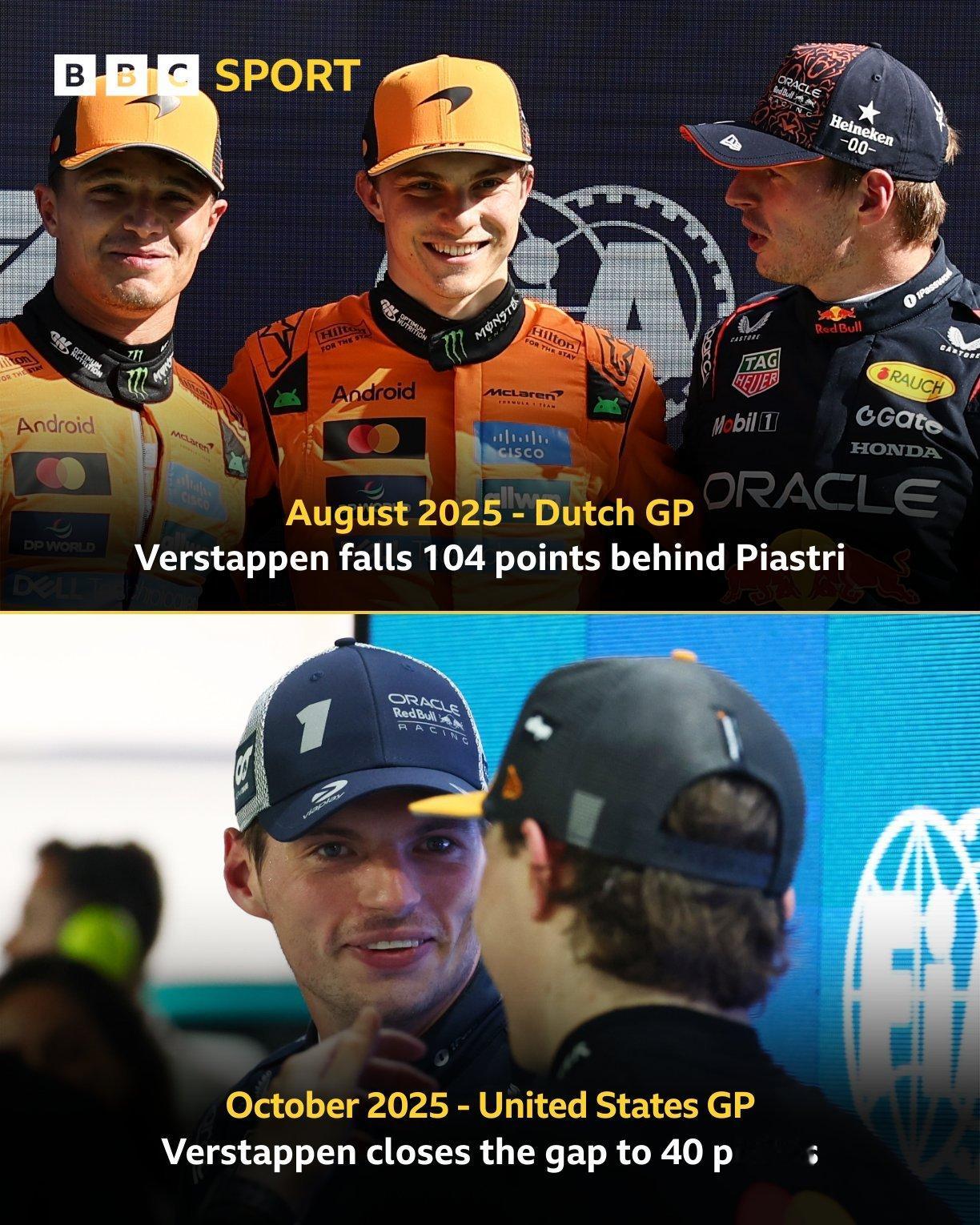 第19站之后,维斯塔潘落后皮亚斯特里40分