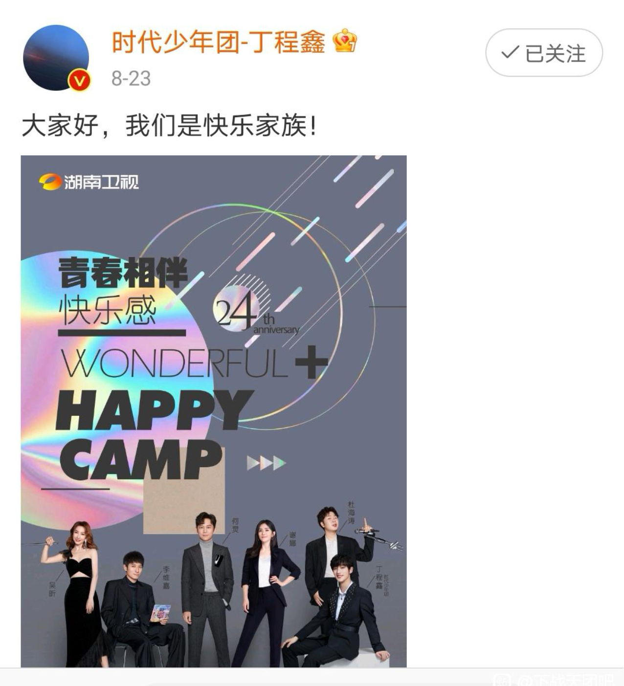 网传快乐家族将录团综如果录制团综,那丁程鑫也会去吧,毕竟他也是快乐家族官宣的一份