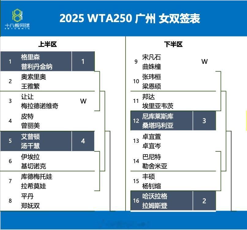广网的女单和女双正赛签表~广州国际女子网球公开赛