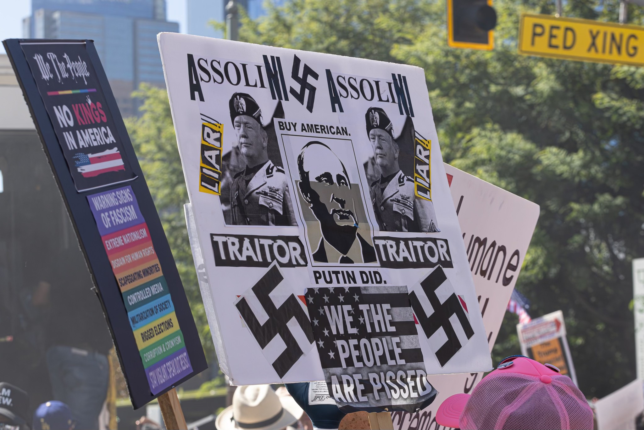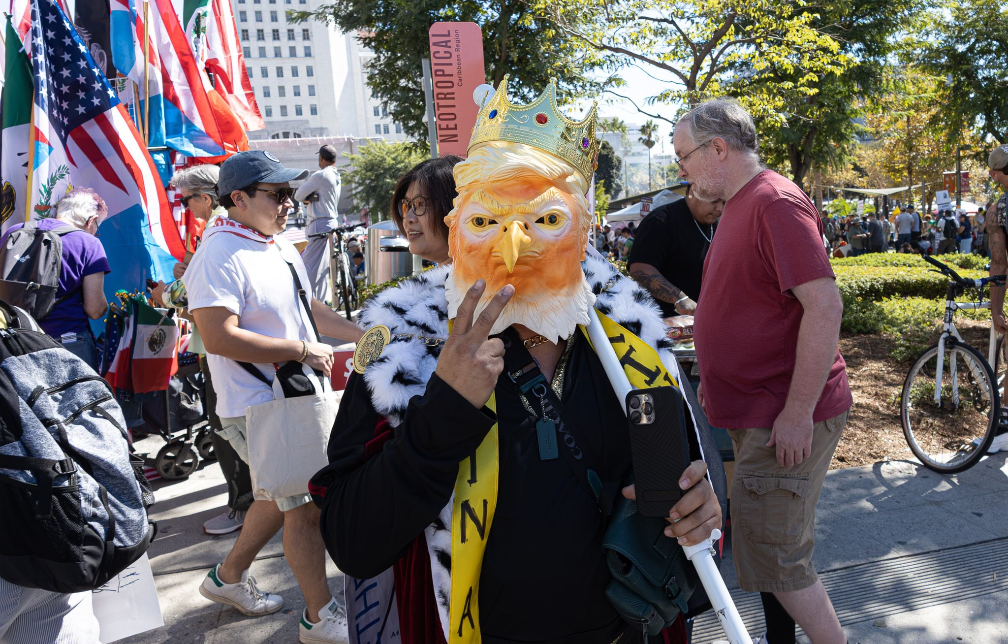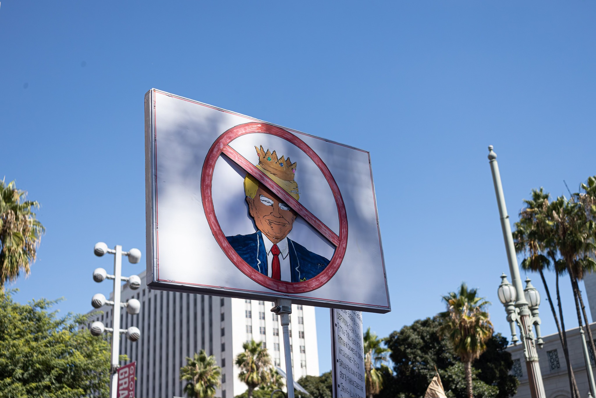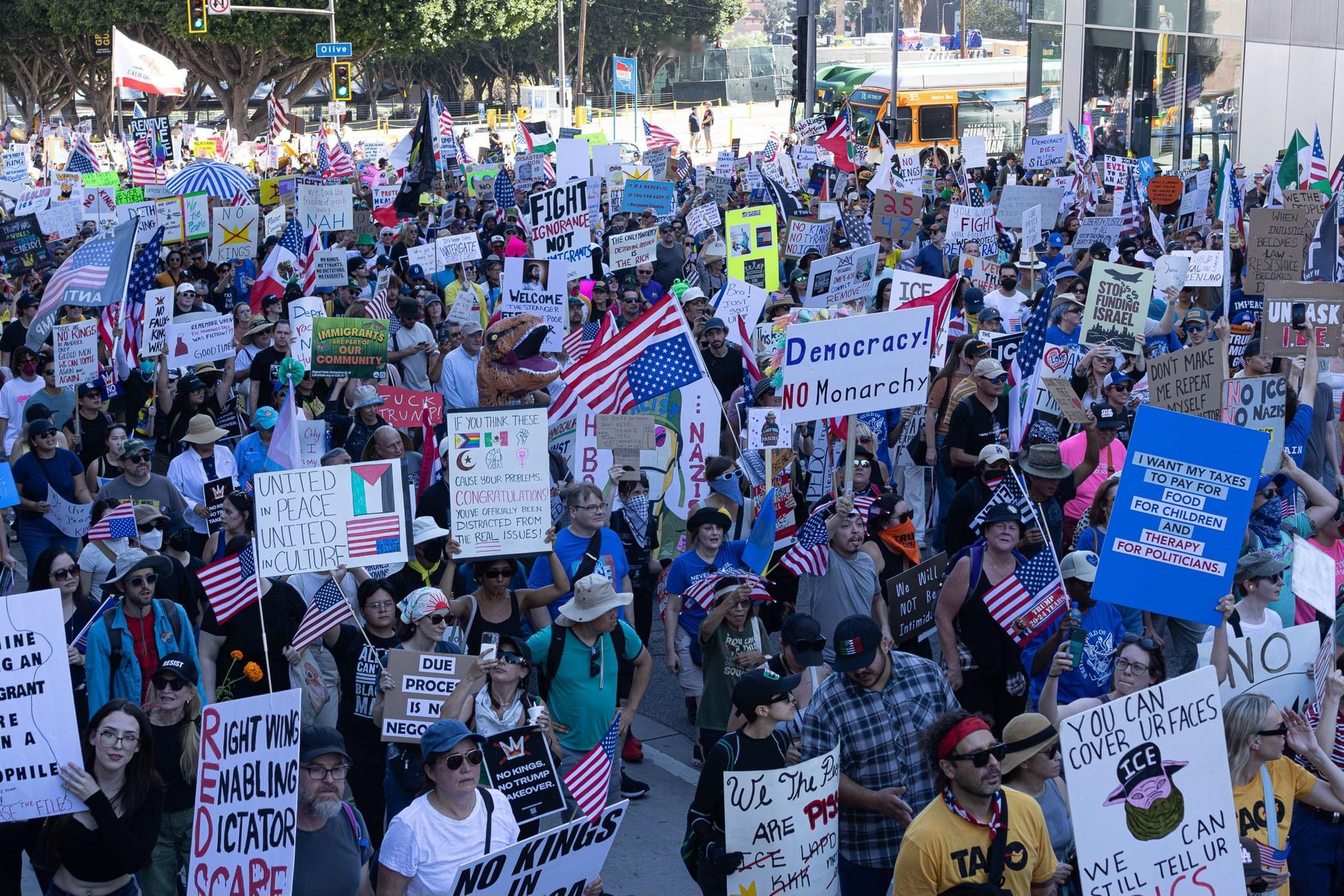 上周末美国洛杉矶的NoKingsDay反特朗普游行活动