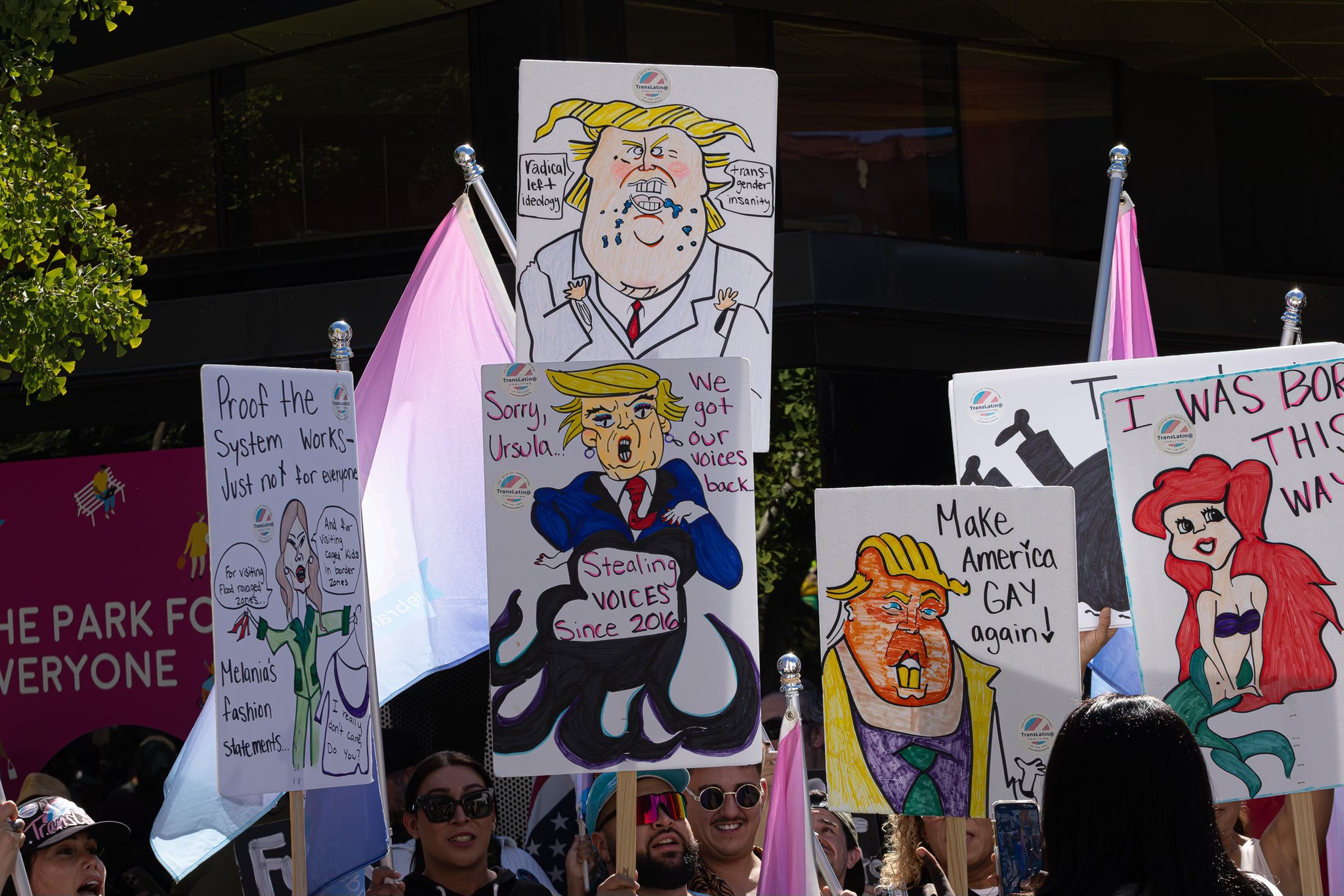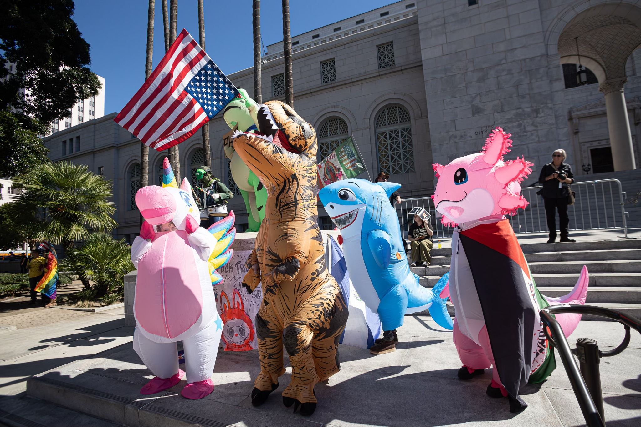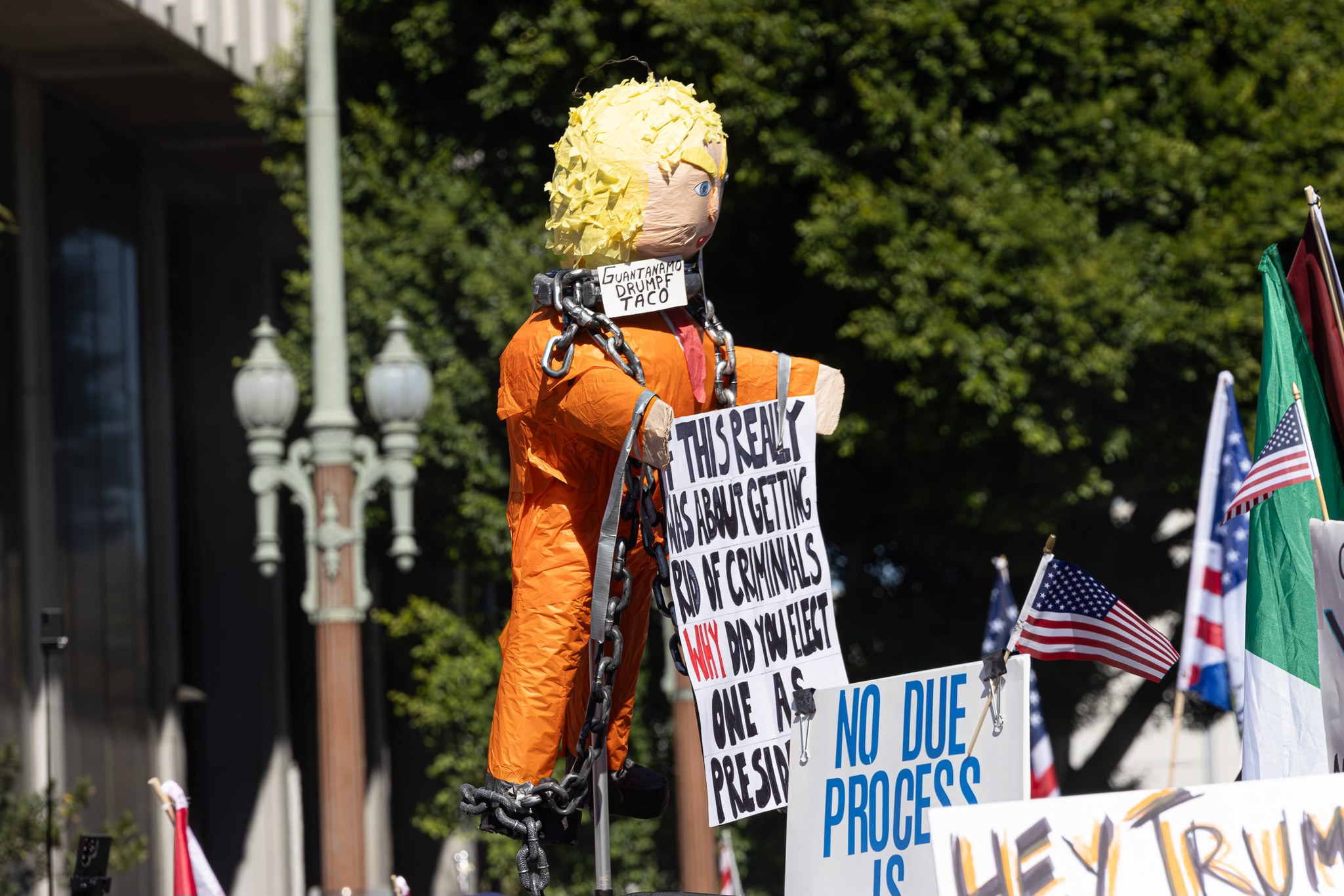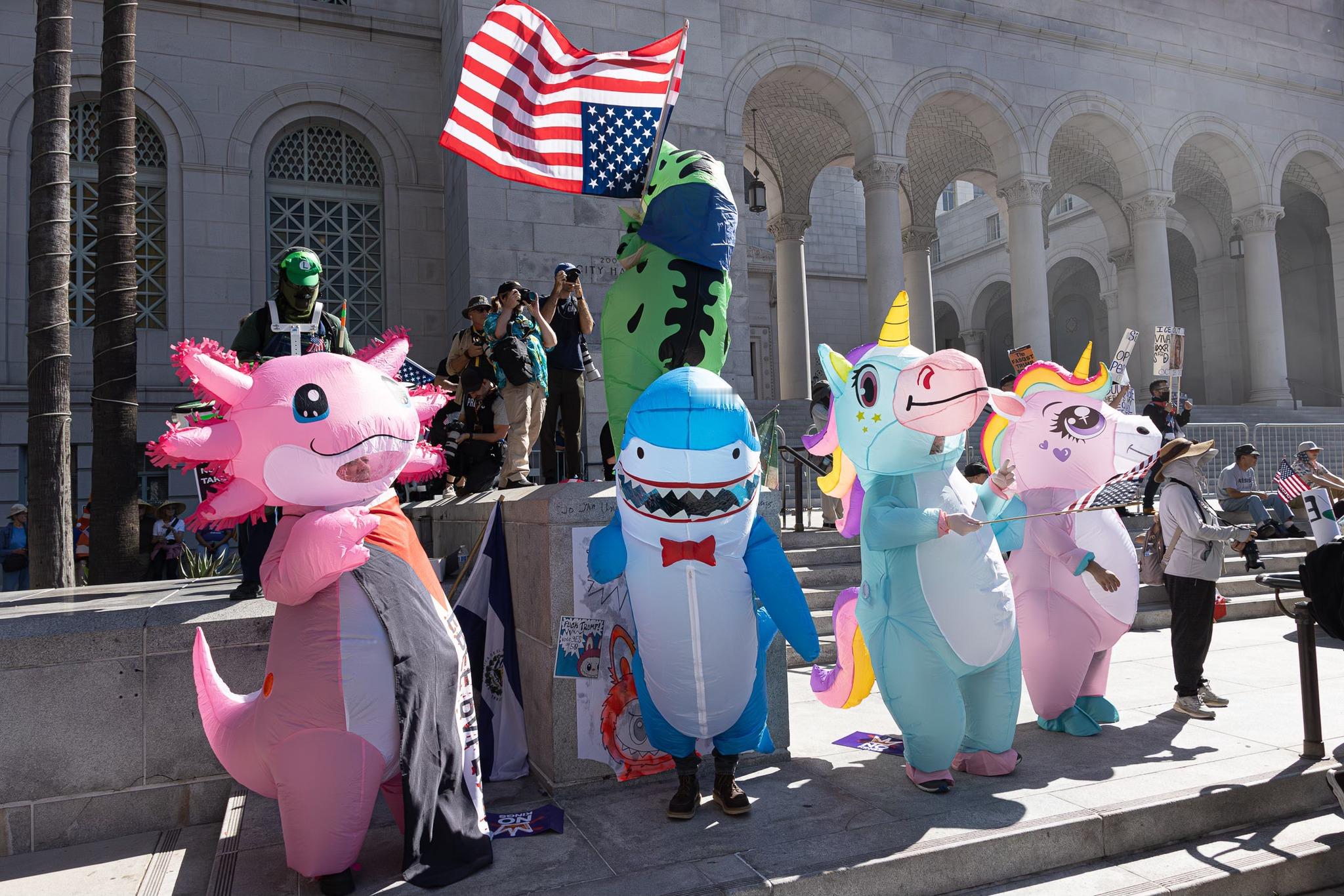 上周末美国洛杉矶的NoKingsDay反特朗普游行活动