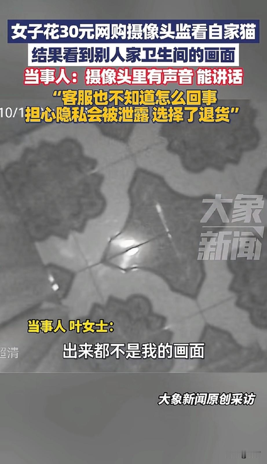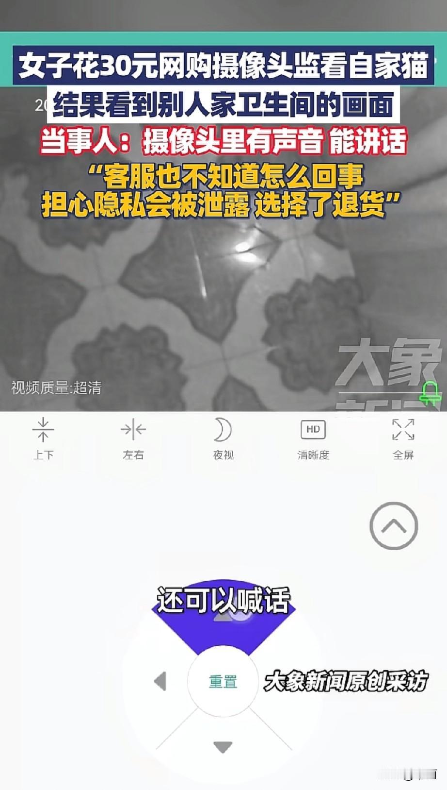 广东广州一名女子花30元网购摄像头看自家猫吃饭,连好设备后竟看到别人家卫生间画面