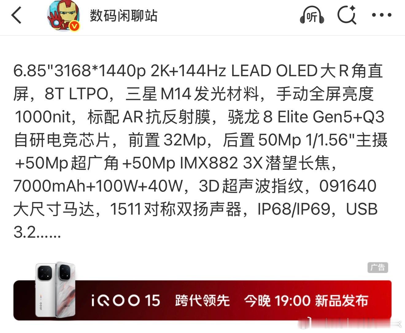 iQOO15今晚发布,这套配置够顶的[允悲]