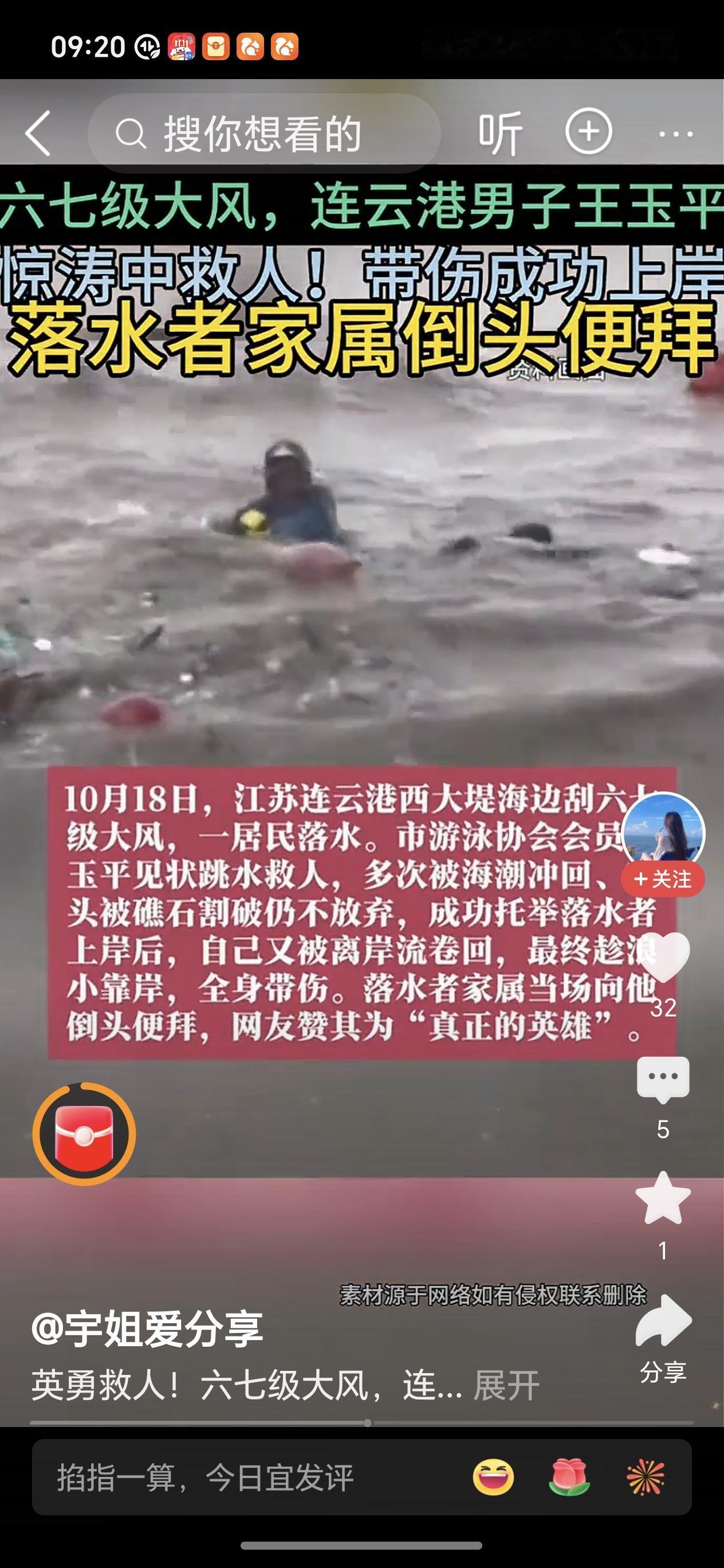 救人大叔身上多处受伤,被救脱险者家属向恩人下跪拜谢! 这位59岁救人英雄太勇敢了真了不起,六七级大风的海中救人不是一般人能做到的,不仅仅是技术也是内心的大爱大义!致敬这位英雄[赞]祝他好人一生平安!