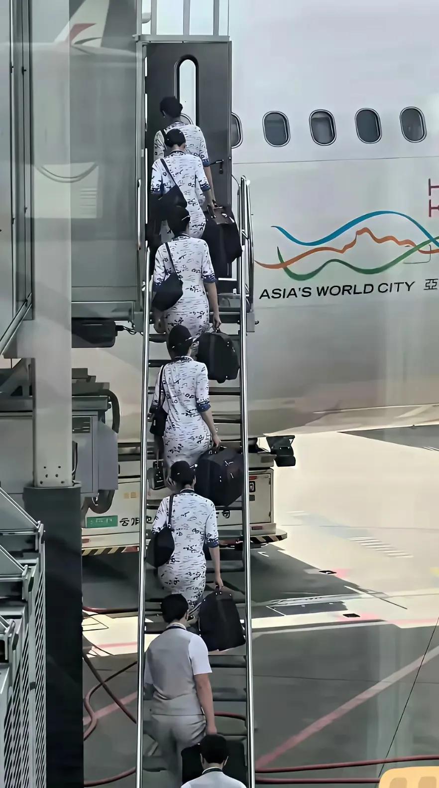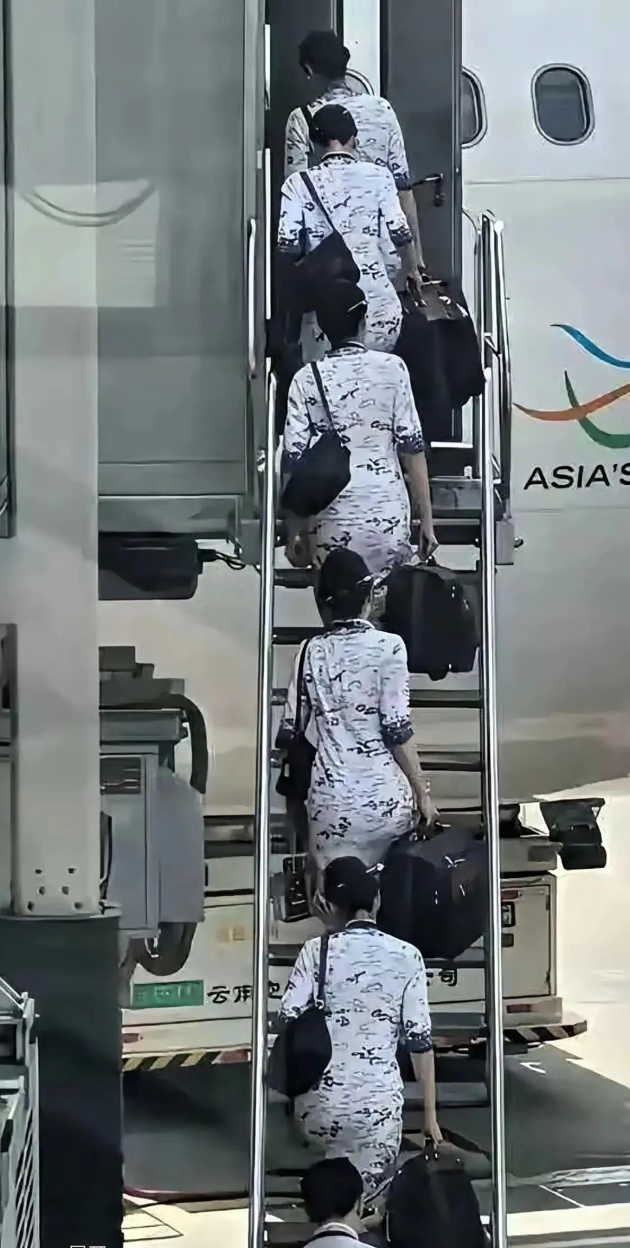 今天看到一位网友发的空姐登机履行职责的照片,让人颇为费解的是,这些空姐为何要走那种小旋梯?旁边明明就有廊桥,为何不从此处登机呢?难道廊桥仅供乘客使用吗?走这样的悬梯,每位空姐还要拎着一个大手提箱,且都穿着高跟鞋,着实危险,看着十分艰难。有在机场工作的朋友,能否帮忙解释一下?