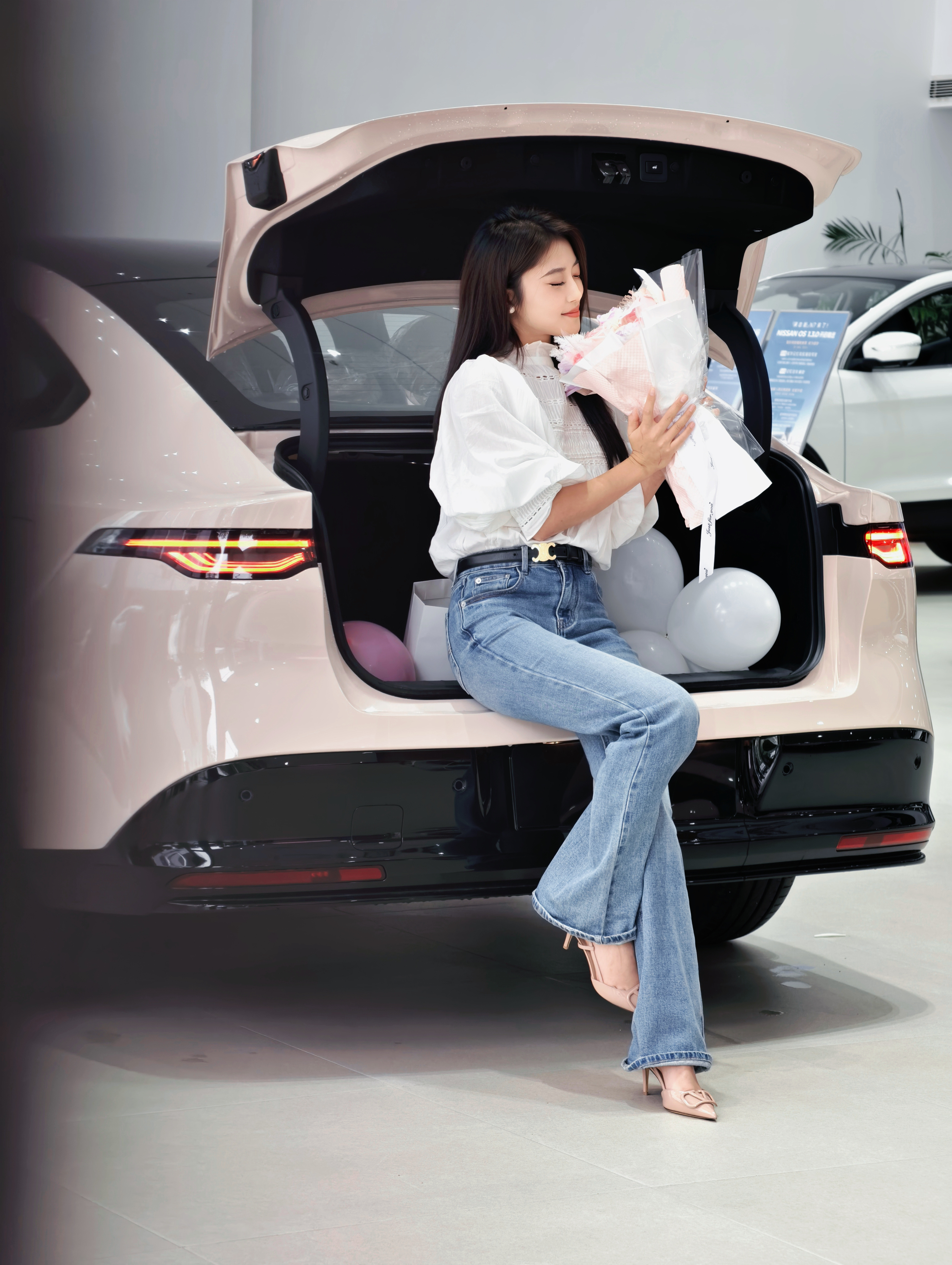 而且这个玫瑰摩卡的内饰,尊嘟很好看,很高级的粉棕色调,给大家发几张我敏姐的提车大片,颜值气质都很搭有木有!