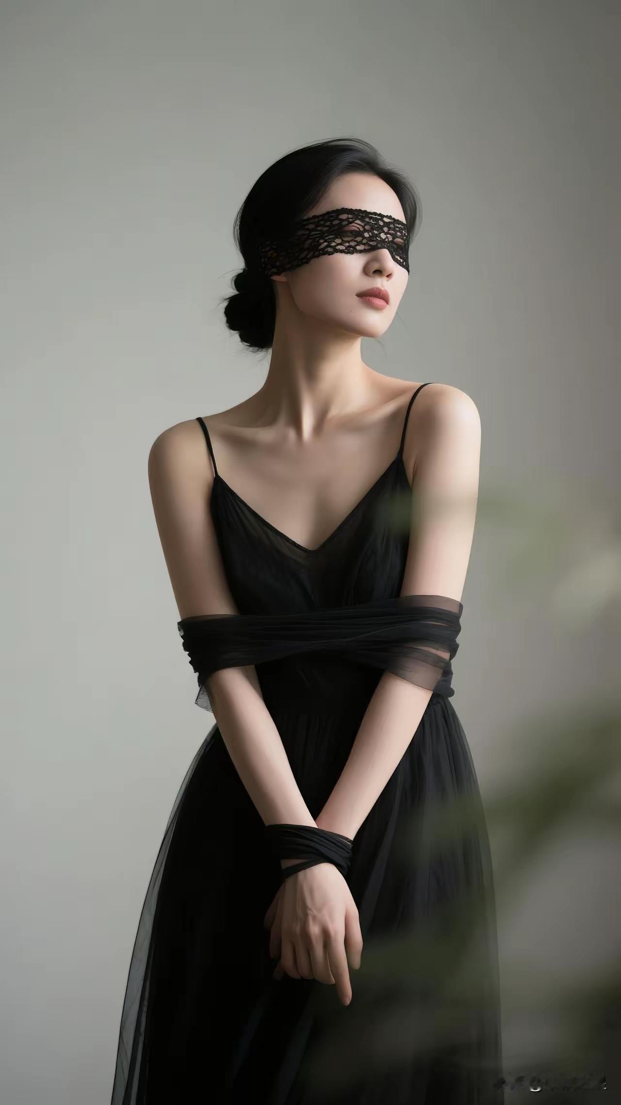 黑纱遮面,神秘优雅,黑裙飘飘,尽显魅力。