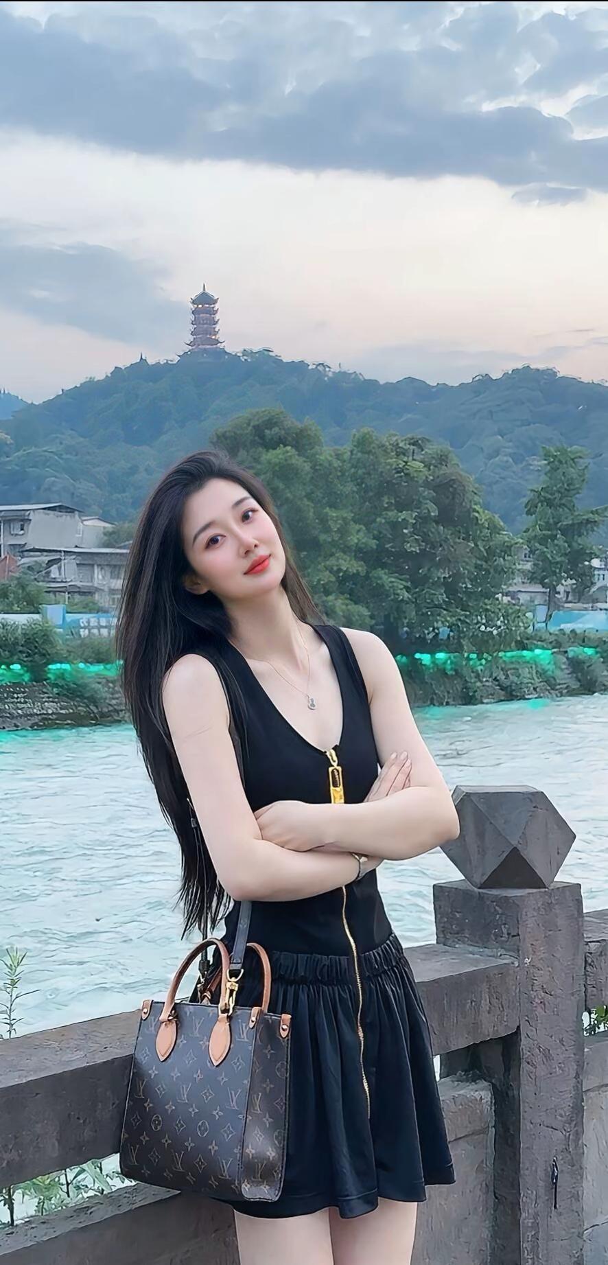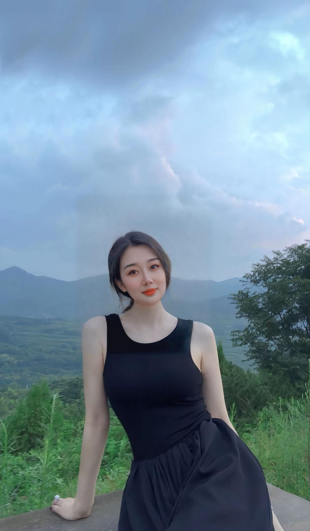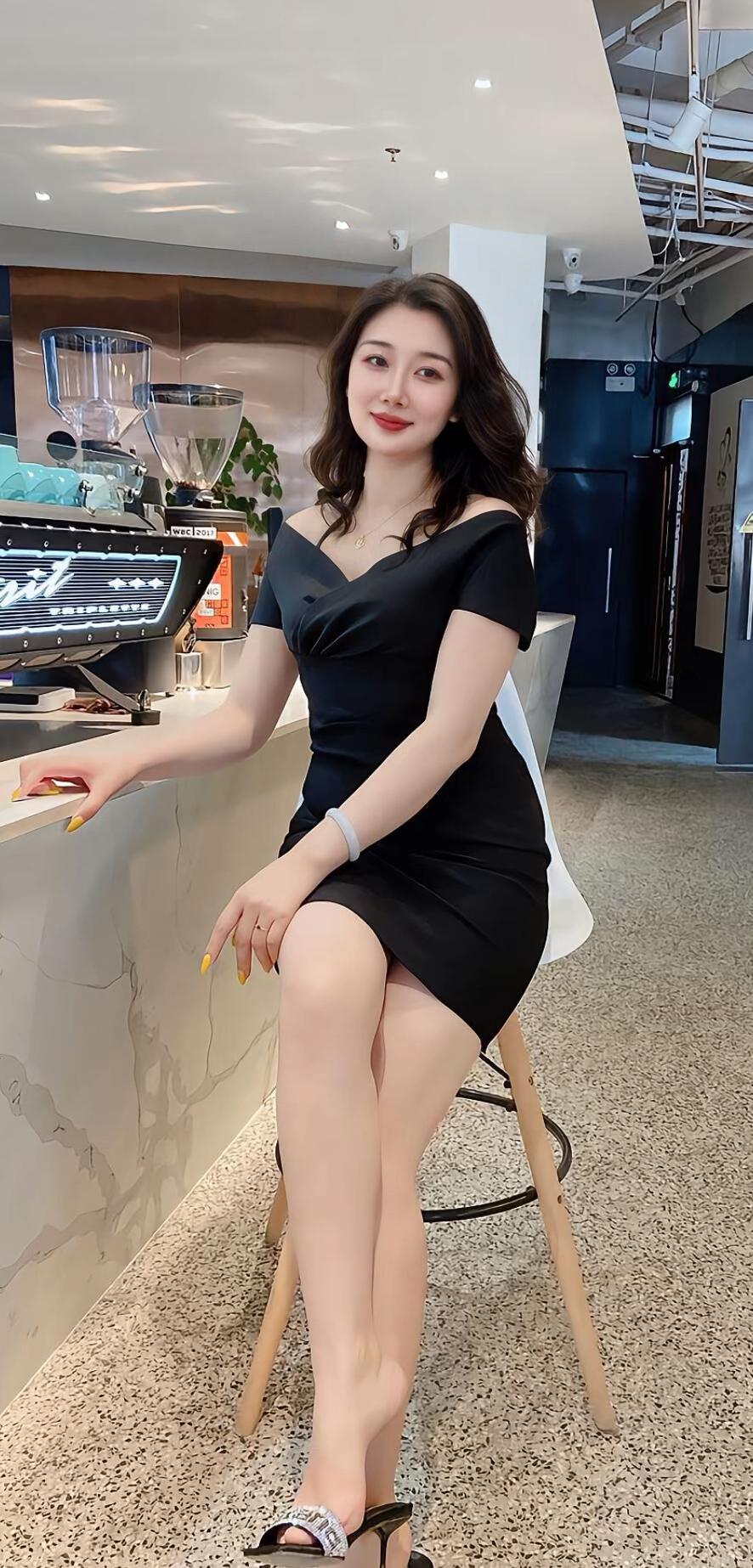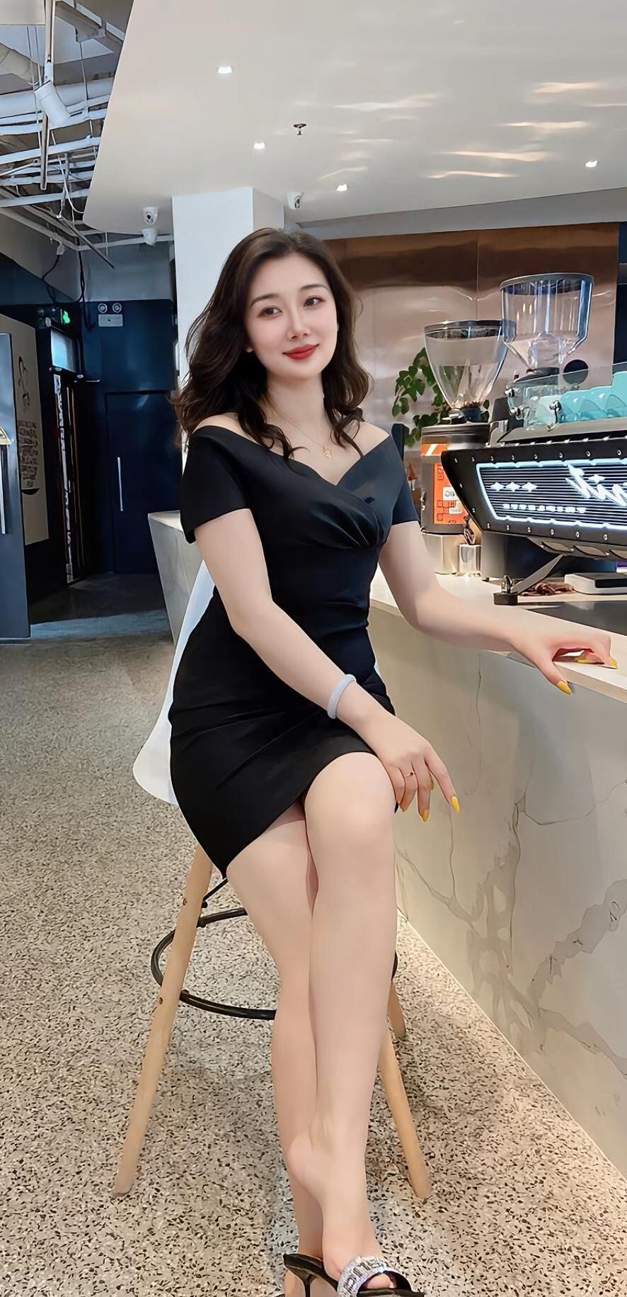优雅黑裙,气质女神,轻松坐出迷人姿态