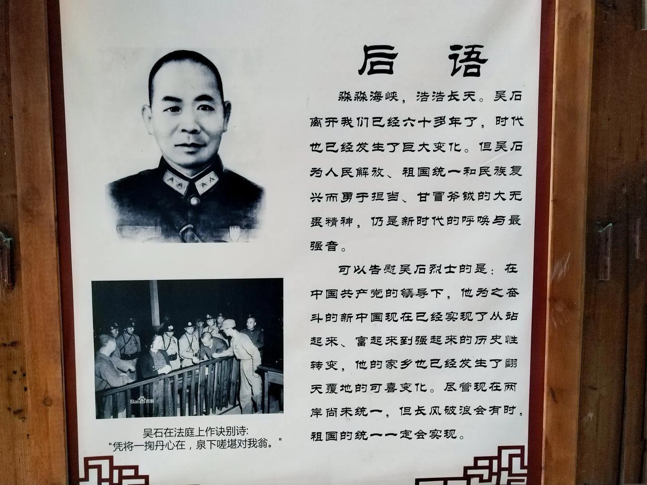 在螺洲镇蜿蜒的巷弄,有一座静立在寻常民居间的白墙灰瓦院落,便撞入了眼帘。吴石故居没有显赫的规制,唯有天井里苍劲的老梅树与厅堂中默然肃立的旧桌椅,在斑驳光影中诉说着不寻常的过往。这座承载着英雄少年记忆的古厝,让屏幕上《沉默的荣耀》里的传奇故事,有了可触摸的温度。 这次福建之行,还有一个愿望就是参观吴石将军的故居。进入故居首先看到毛泽东主席的题词,还有人们参观故居后敬献的鲜花。 故居的陈设如无声的叙事者,将一位“儒将”的抉择娓娓道来。墙上的照片里,挂着毕业于保定军校、留学日本陆大的吴石将军,他目光坚毅,这位曾被誉为"军界奇才"的国民党国防部参谋次长,本可坐拥高位厚禄,却在历史的十字路口上选择了最危险的潜伏之路。 展柜中还有与妻儿的书信复制件,字迹温润,“此去良朋益友远隔天涯”的怅惘背后,是明知前路凶险却义无反顾的决绝。 最令人动容的是,英雄藏于细节的赤诚。他将国民党国防部500箱绝密档案辗转调运至福州,临终前仍嘱托亲信将核心档案转交解放军,其中珍贵的“末次资料”成为历史实证,即便身陷囹圄受尽酷刑,仍留下“凭将一掬丹心在,泉下差堪对我翁”的绝笔,用生命践行了对信仰的忠诚。毛泽东主席“虎穴藏忠魂,曙光迎来早”的诗句,正是对他一生最精准的评价。 今天参观时,看到一位白发老者默默鞠躬拭泪,父母向孩子轻声讲述,年轻游客驻足沉思,这场景恰是对英雄最好的告慰瞻仰英雄故居