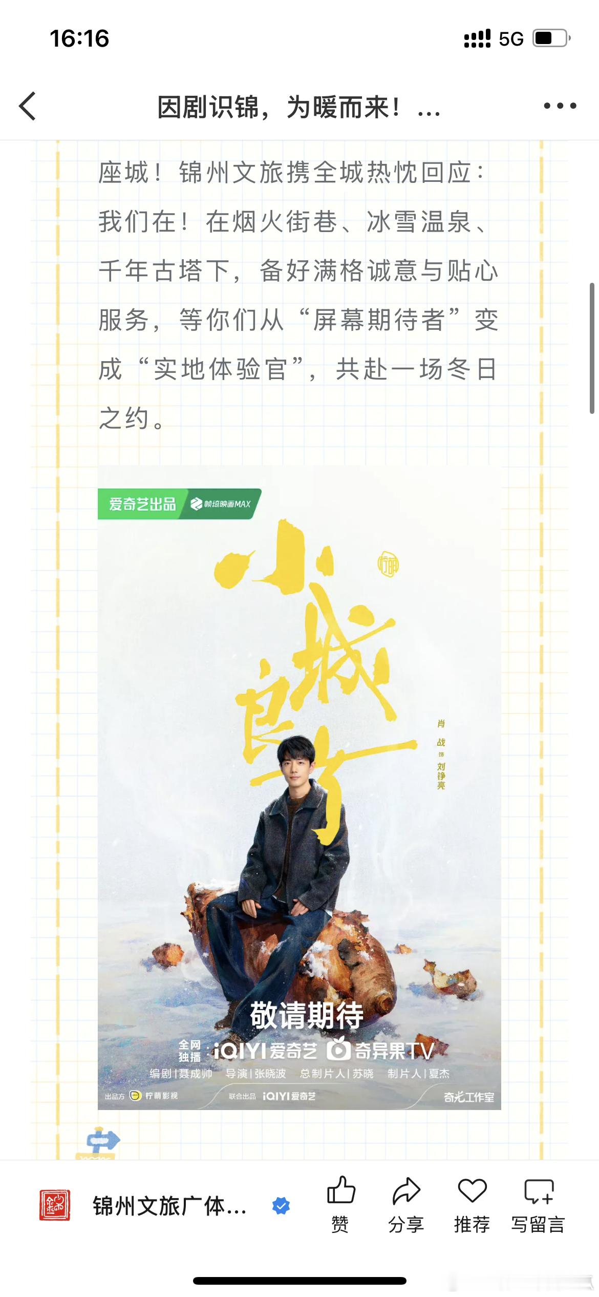 并向“小飞侠”与剧迷发起了冬日邀请函,欢迎大家到锦州做客!