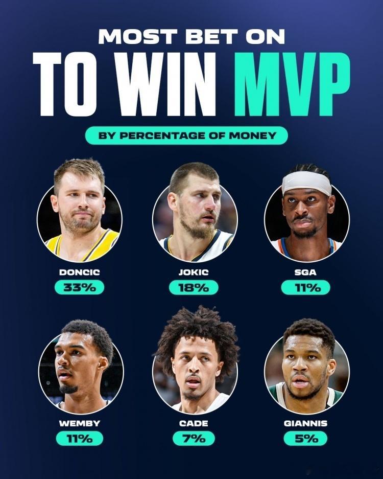 ESPN旗下的Bet数据显示,最多人看好东契奇赢得新赛季MVP。湖人东契奇​​