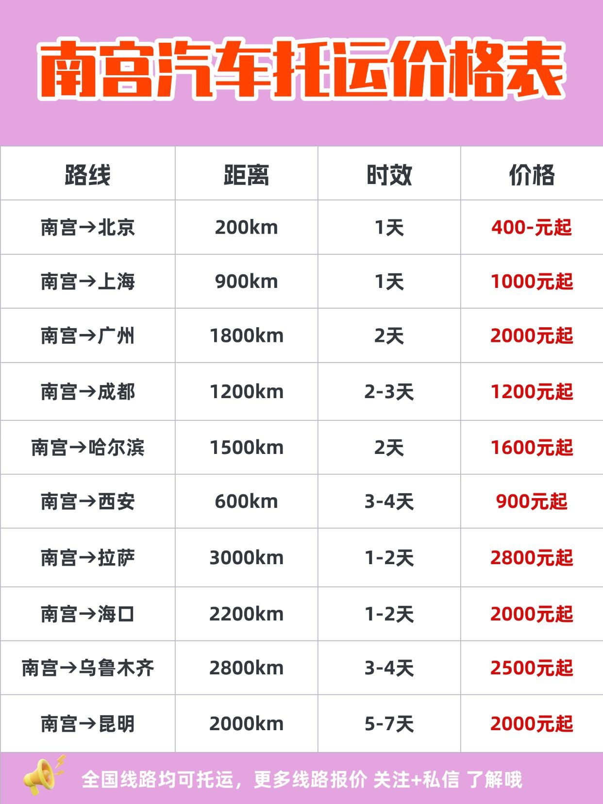 南宫发运汽车报价区间 & 时效 ✅ 全国报价区间:1500元~6000元(具体看距离/线路) ✅ 全国时效参考: 500km内:1-2天 1000km内:2-3天 2000km内:3-5天 3000km+:5-8天 车辆会被偷?安全问题解答 👉 完全不必担心!正规公司这样操作: 1️⃣ 独立保险:强制投保「车辆运输险」,赔付全程覆盖; 2️⃣ 全程GPS监控: APP可实时查车位置; 3️⃣ 封闭式笼车运输:防剐蹭+防偷盗; 4️⃣ 交车验车拍照:出发/到达均留痕,划痕当场理赔! 📌 划重点:选有「道路运输许可证」+独立保险的公司!拒绝中介! ❓轿车 vs SUV 价格一样吗? 不一样!SUV会贵200~500元! 🚙 原因: 1️⃣ 占用笼车空间更大; 2️⃣ 部分高度超限需调整仓位; 3️⃣ 重量增加油耗成本。