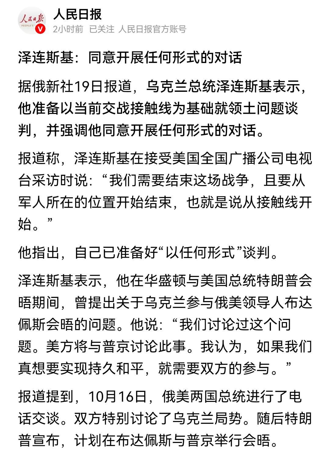 泽连斯基“同意开展任何形式对话”[吃瓜群众]泽圣,这是要“投”了?[思考]没那么容易吧,大概是川普给压力太大,表个态配合下,顺便给欧洲的冤大头说“快打钱,不然真投了”[灵光一闪]