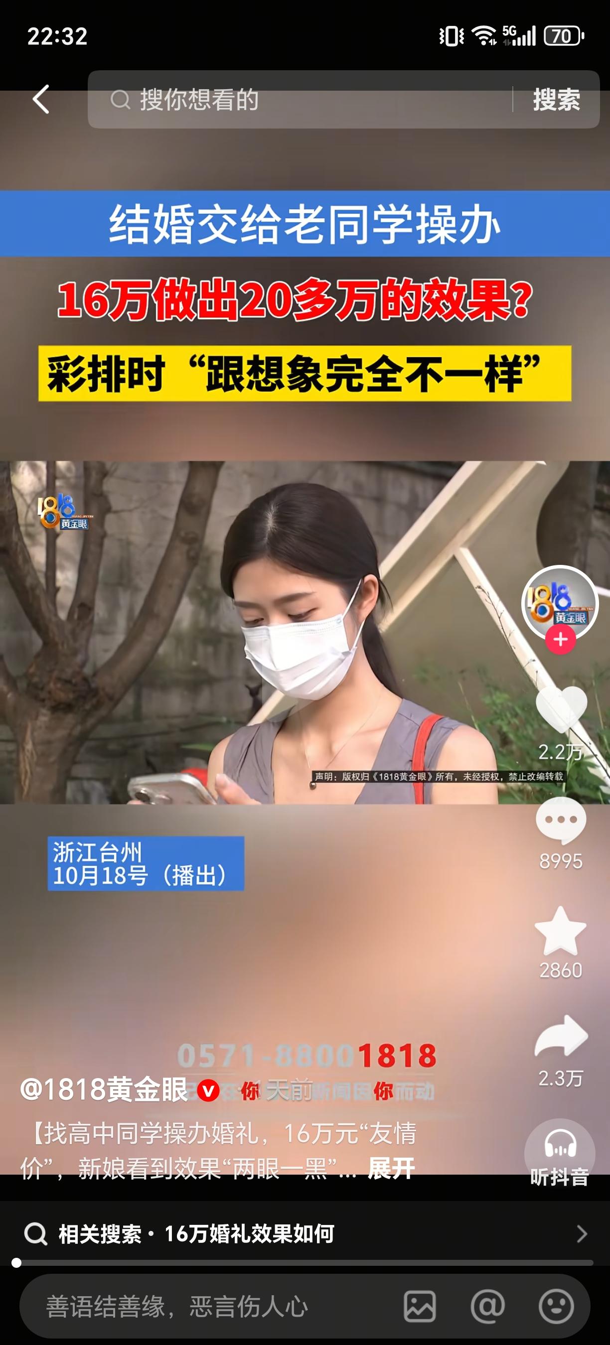 浙江台州,一女子结婚,为了图省事,花16万让老同学来操办婚庆。她和这位同学上学那