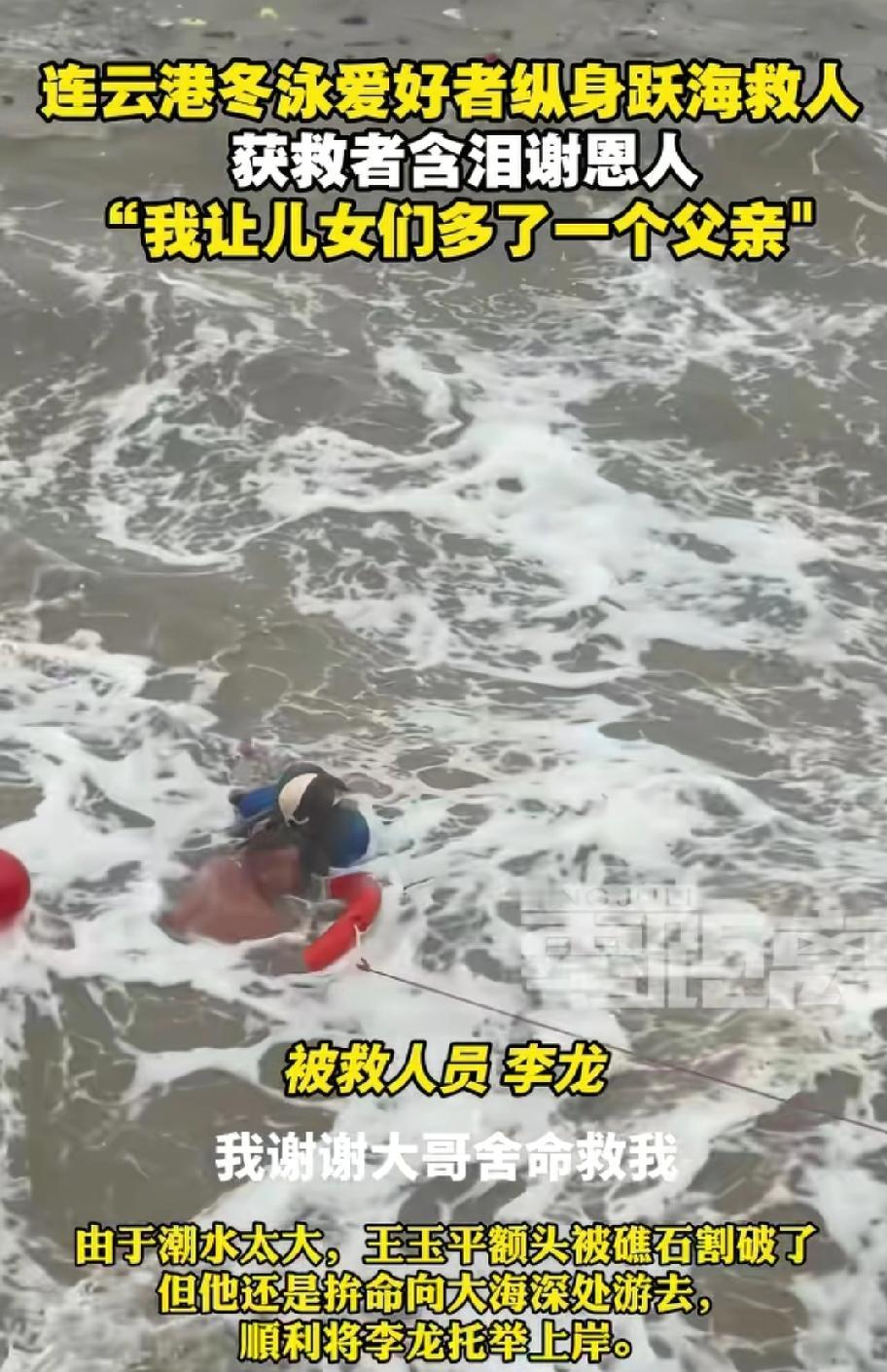 舍命救人的大哥找到了 他叫王玉平,当问到救人的原因时,王大哥说:“很简单,我是党员”。 当时他是拿着自己的生命去救人,海上8级风浪,一个浪花就有可能把人卷走,就连救援人员都不敢贸然下去救人,可王大哥却说这点小事没什么,救人是出于本能。 在他眼里这样事是小事,可在获救者心里已经把他当成了亲人,被救起的落水者表示,那么多人有几个人会救你,如果因为救我王大哥要是出了事,他良心上过意不去。 当地对王大哥的救人事迹很重视,给予王大哥1万元的奖励,这个奖不仅是对好心人的一个肯定,更是将正能量传播下去。