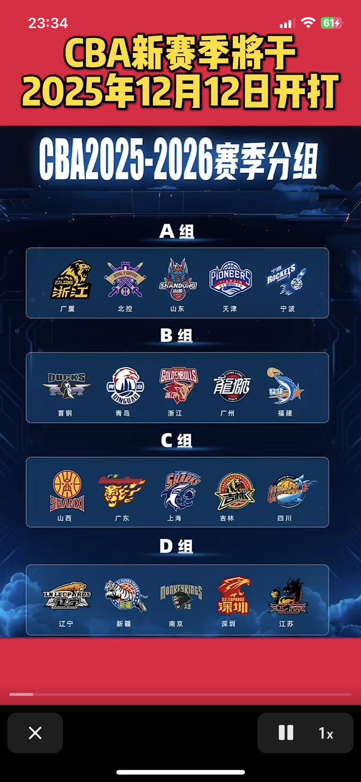 大家心心念的2025-2026赛季CBA联赛赛程已基本确定,没想到赛程那么密集,看了广东队的赛程基本上2天1场,5天3场,真是考验球员的体力,好在广东队球员年轻,轮换人员多,而且整个夏天都在打热身赛,球队的训练和磨合都没问题了,本赛季揭幕战12月12日卫冕冠军浙江广厦对阵山西汾酒,而广东队的首场比赛则是在12月14日主场迎战南京同曦,广东队的球迷们,收藏赛程了! 常规赛 开始时间:2025年12月12日 共分4个小组: A组:广厦、北控、山东、天津、宁波 B组:北京、青岛、浙江、广州、福建 C组:山西、广东、上海、吉林、四川 D组:辽宁、新疆、南京、深圳、江苏 赛制: 同组球队之间进行3场比赛(2主1客或2客1主) 不同组球队之间进行2场比赛(1主1客) 共计打42轮,4个月就打完!中间还穿插着俱乐部杯赛,一年12个月匆匆打4个月又到休赛期,真是不够看,剩下的时间太漫长了又没有比赛看了!