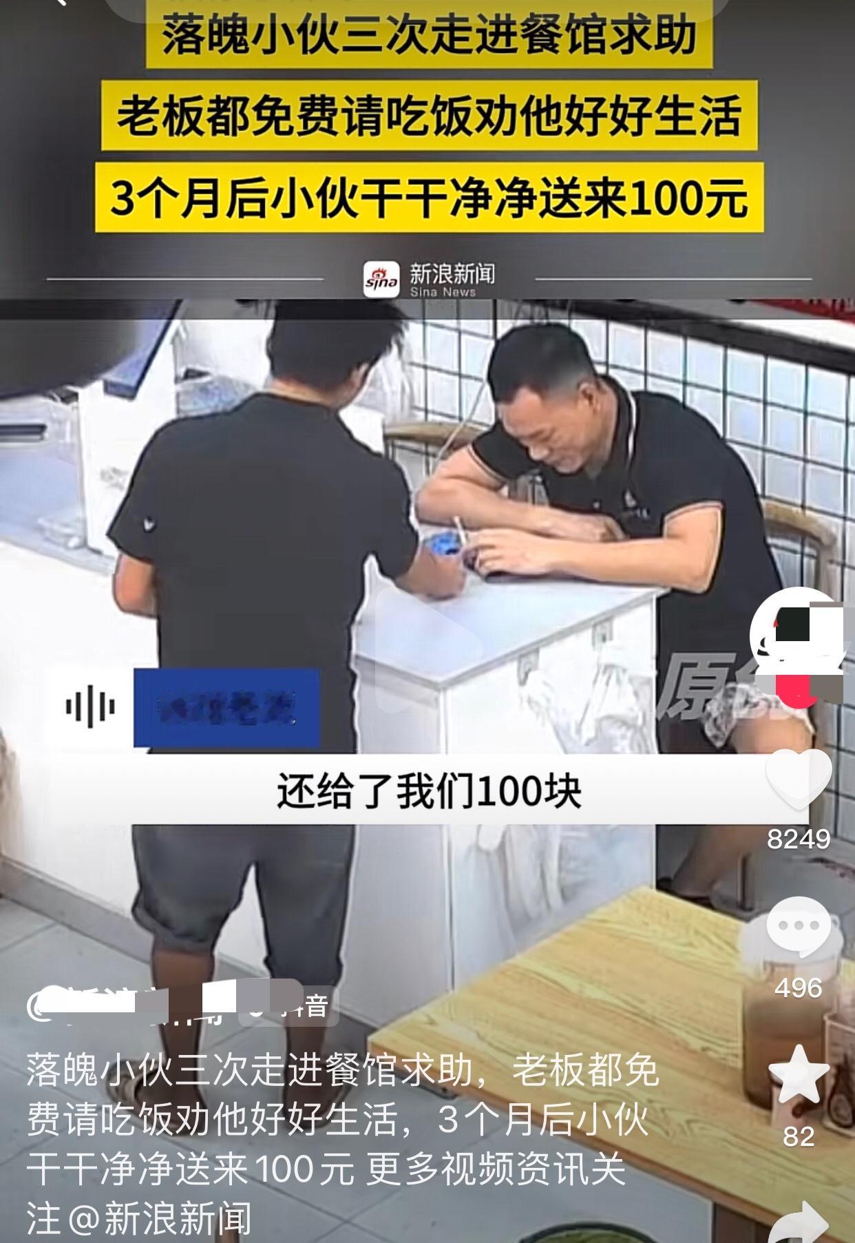 三顿快餐,换来小伙一辈子的感恩! 事情发生在今年7月,广州花都,一名蓬头垢面小伙走进一家湖南衡阳夫妻俩开的快餐店,怯生生小声问店里的老板娘:我现在没钱,能不能打一个快餐?老板娘二话没说就给小伙打了一个快餐,还特意多加了一些菜。 之后小伙还来了两次,快餐店老板夫妻照样让小伙免费吃饱 隔了三个月,快餐店老板夫妻俩本以为这事也就这么过去了,谁知道,10月17日晚上,小伙再次来到快餐店。和之前相比像换了一个人,这次穿的干干净净,从口袋里掏出一百块钱说:我找到工作了,这是上次饭钱,请收下!老板执意不要,小伙丢下钱转身离开了快餐店。(来源:浙江日报) 见到这一幕真的让人感慨,三顿快餐对于落魄的小伙是困顿中的暖阳,百元回馈更是他重拾信心的回响。老板不问缘由的馈赠与小伙刻在骨子里的感恩,让平凡小事迸发出动人力量。这世间最暖的循环,莫过于,你赠我微光,我还你明朗,一次善良,足以让人温暖一辈子。