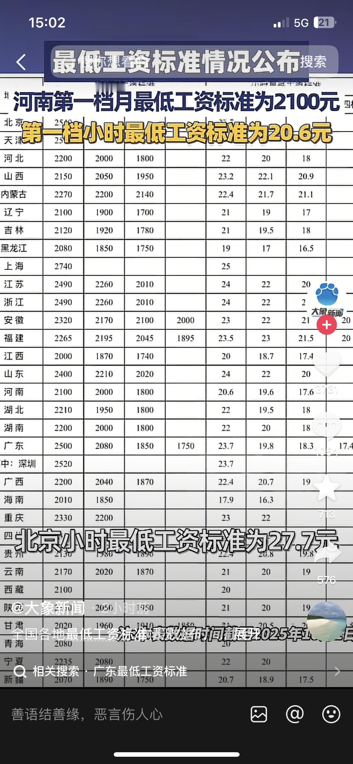 全国最低工资大比拼!河南月2100,上海飙到2740!打工人看完沉默了… 咱河