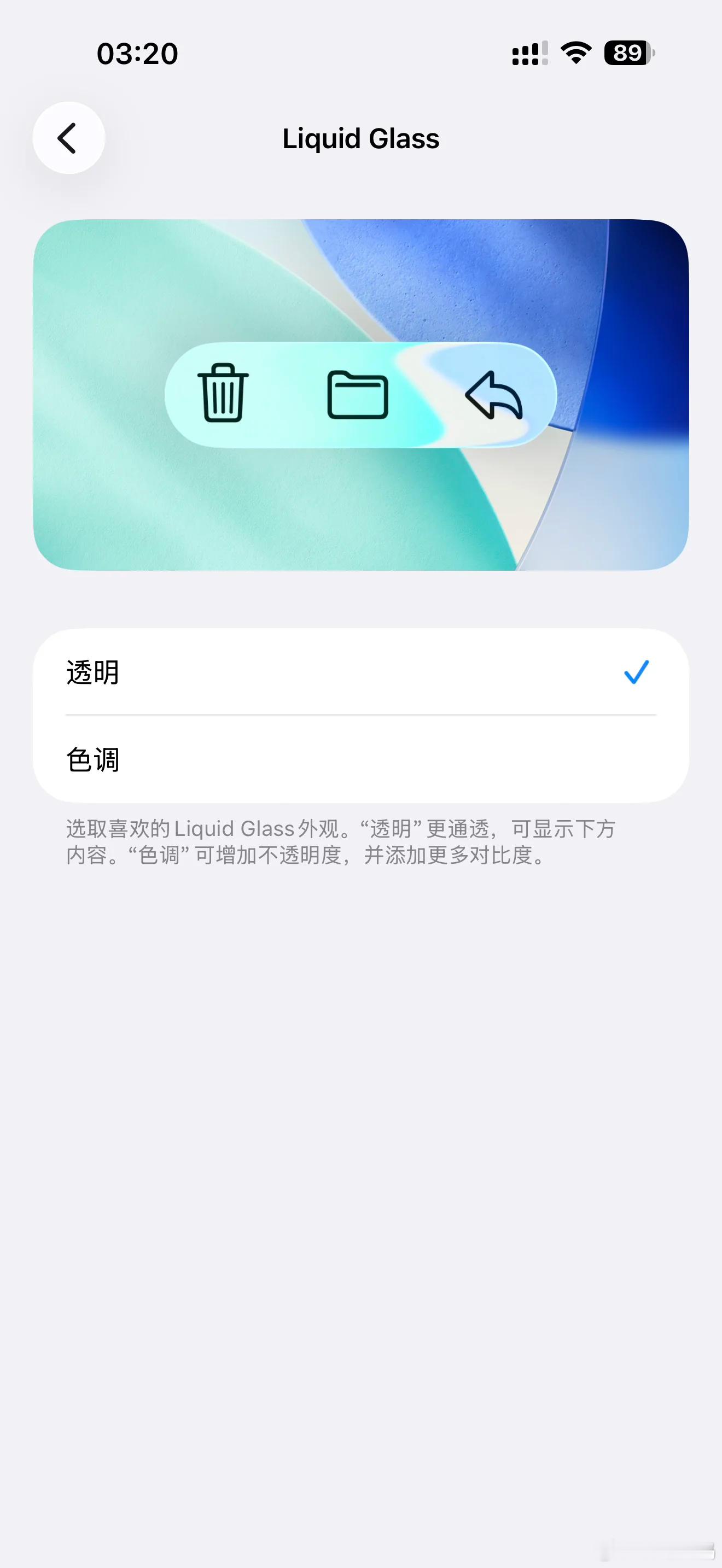 iOS26.1 beta4,新增 Liquid Glass 透明度控制开关!果子也听劝了[傻眼]