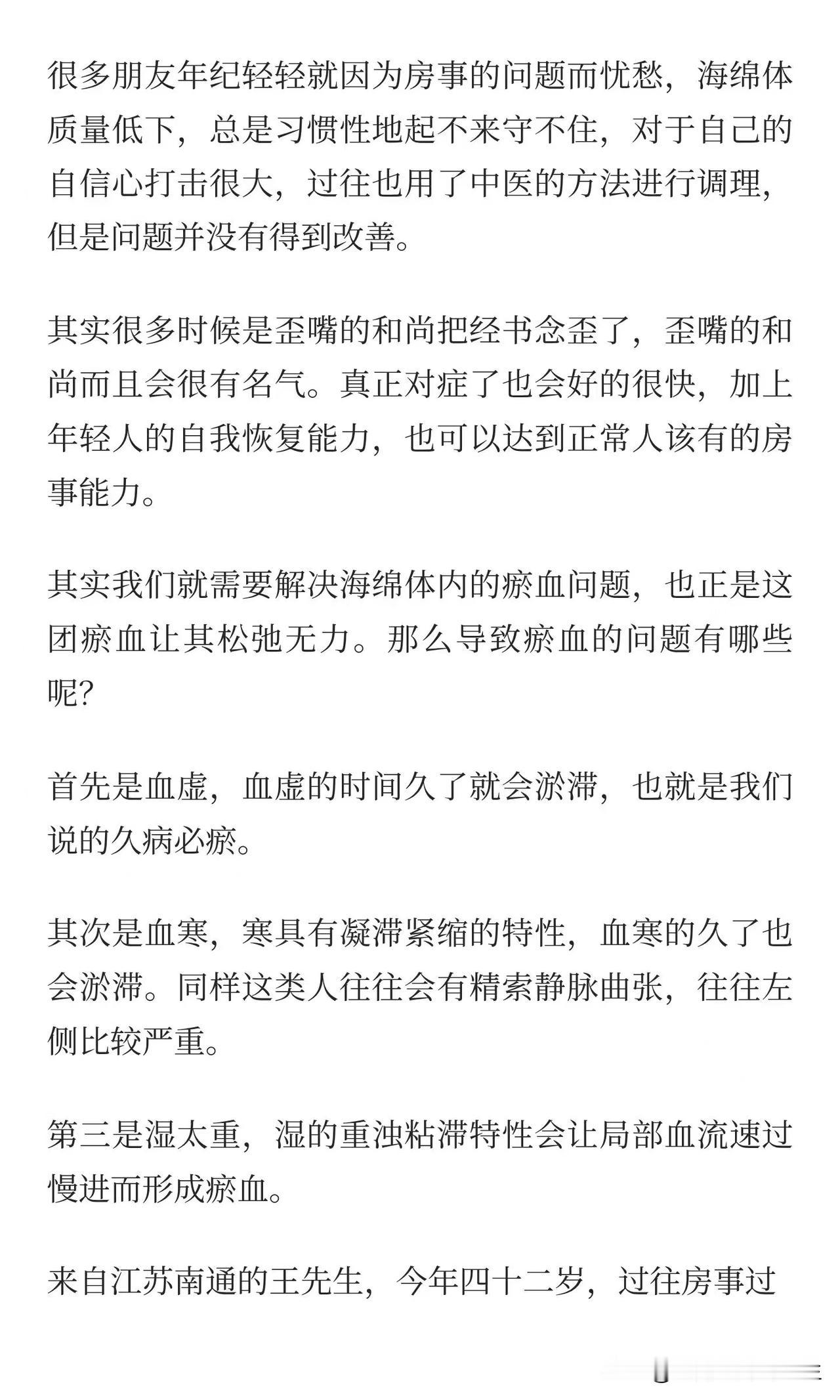 勃起状态不佳、持续时间短?血虚血瘀可能是 “绊脚石”!