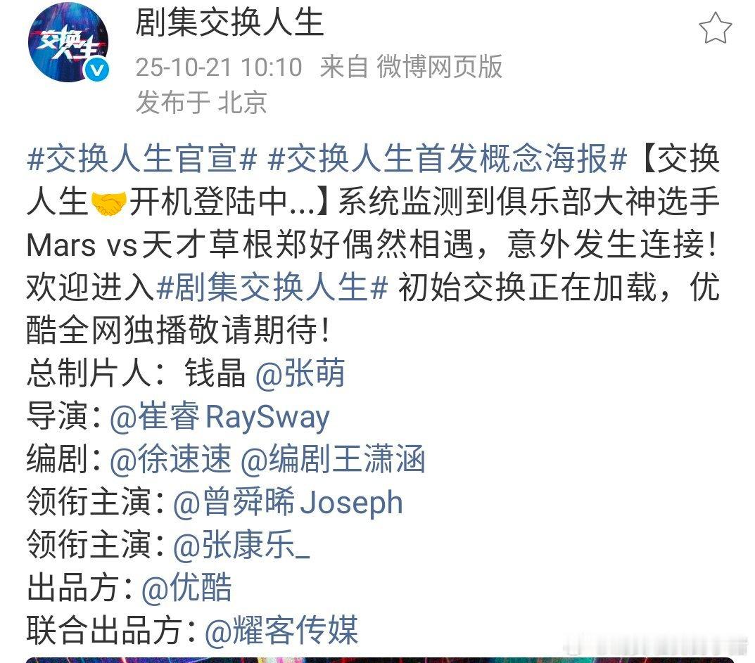 交换人生正式官宣,领衔主演曾舜晞、张康乐,你期待谁?[干饭人][干饭人]