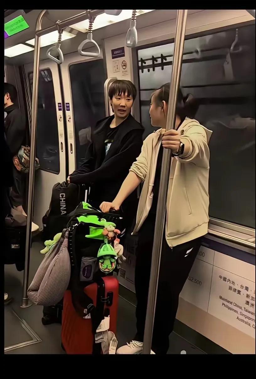 今早看见曼昱和徐奕乘做公共交通,她俩推着行李箱时而急促走,时而相视一笑。行李箱上挂着的小玩偶一颠一甩的像在催促姐妹俩快点上车。 曼昱和徐奕上车后,俩个人长吁一口气,曼昱靠在车门边的车厢上,徐奕则左手扶住车厢里的柱子,俩个人面对面接着又聊天,看起来不像世界第二的王曼昱和她的闺蜜,简直是俩个普通女孩。 王曼昱顶尖的球手,25年拍了无数个代言广告,早就家喻户晓,这次做公共交通没有人要求签名,更没有人拍照。也没有狂呼高叫,同坐一辆车的人静静看着她俩,就像看邻家女孩。赞赏曼昱做人内敛低调,没有专车接送说明她没把自个当球星。 车上的人都是有礼有节有理智的球迷,才是真正爱曼昱的球迷。 真的很喜欢曼昱和徐奕,希望有一天俩个人能同时站在领奖台上。