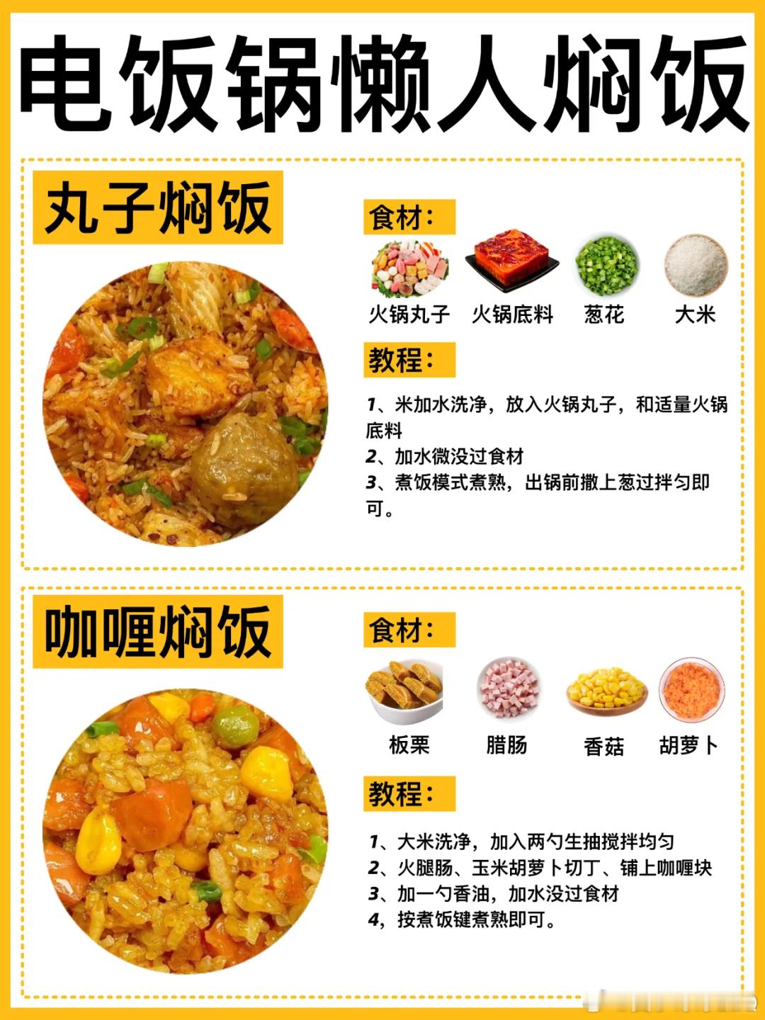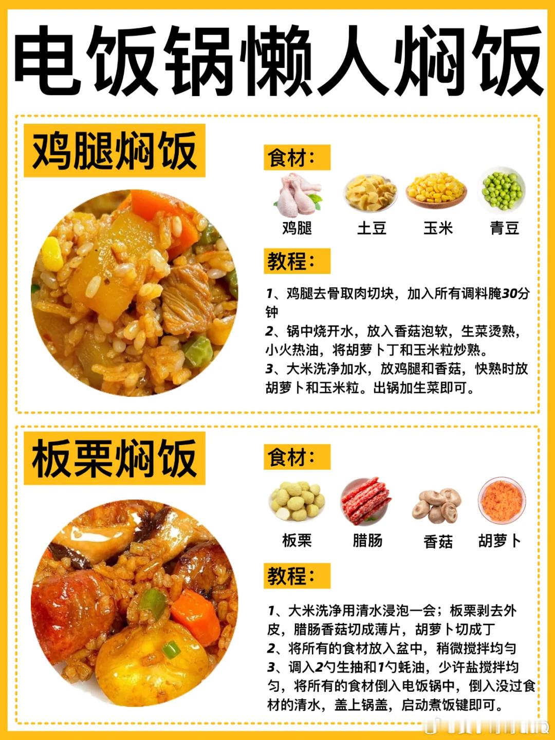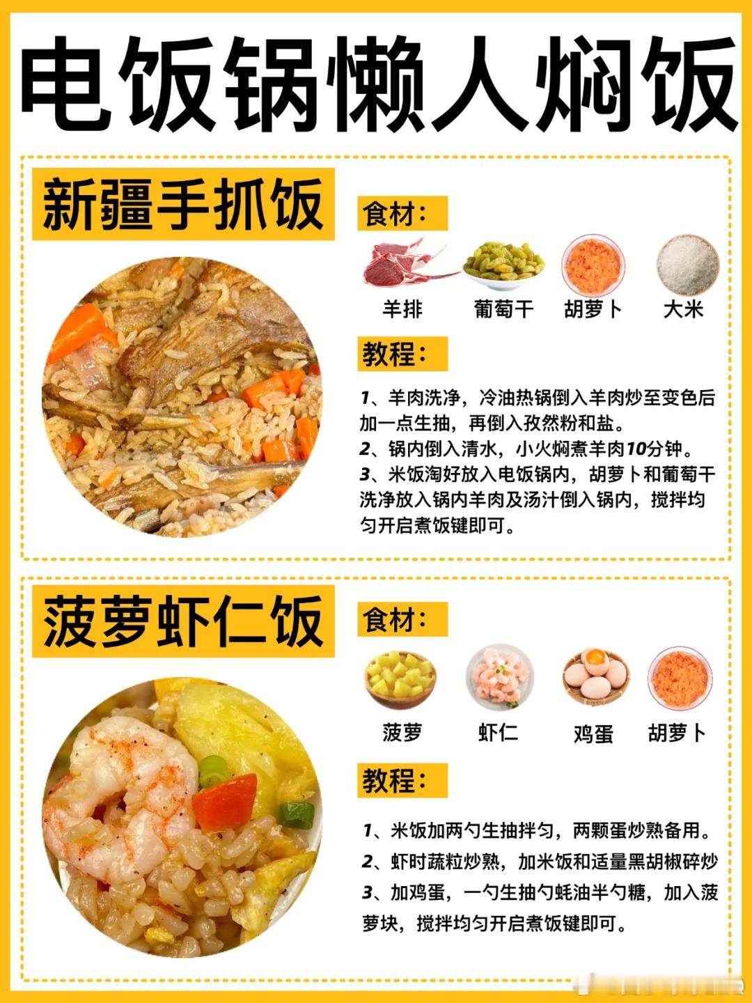 今天吐血整理8款有手就会的电饭锅焖饭合集!✅懒人必备!简单好吃!每次做都被香晕!!新疆手抓饭、菠萝虾仁焖饭、鸡腿焖饭、板栗焖饭、丸子焖饭、咖喱焖饭、排骨焖饭、腊肠焖饭。