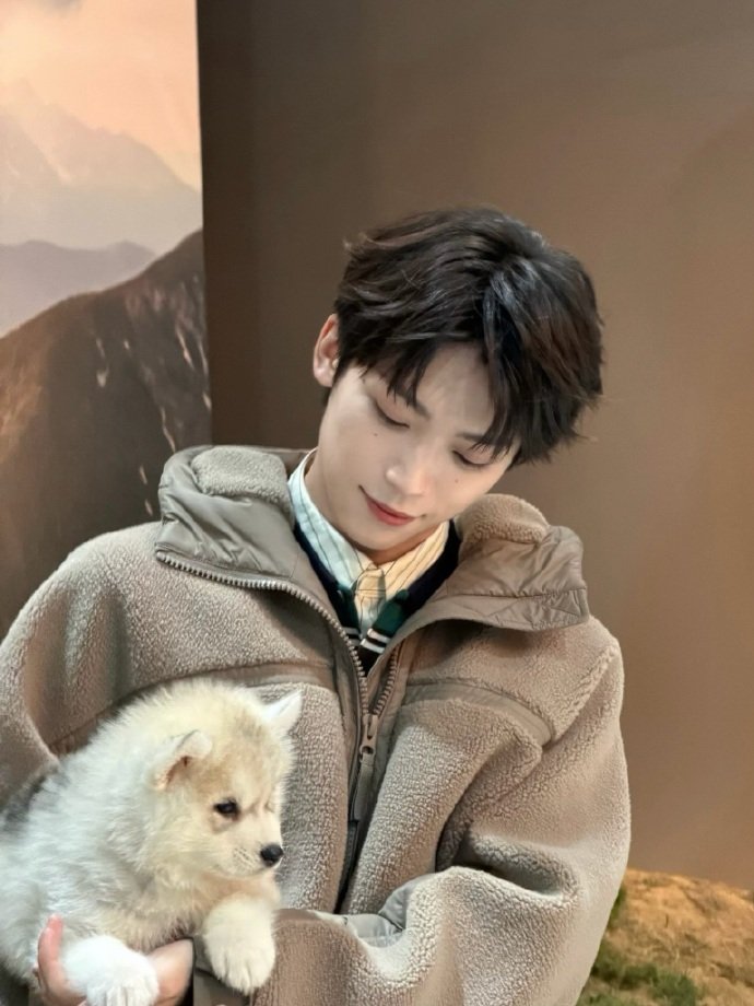 梓渝掉落一组拍摄live,梓渝暖冬氛围,谁懂这个小梓渝和萌宠一起拍照的可爱值呢~