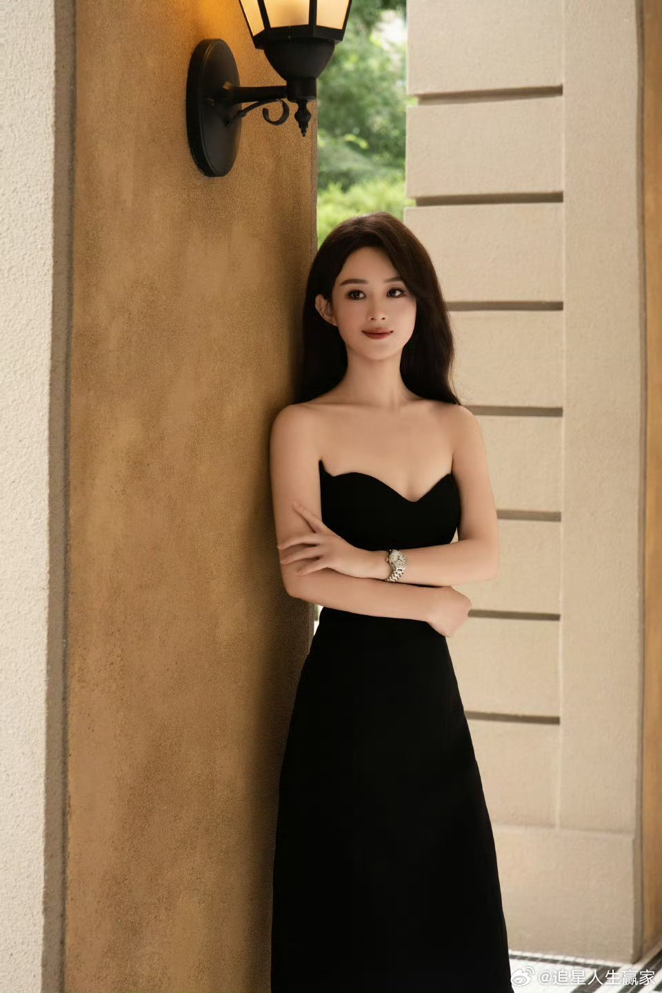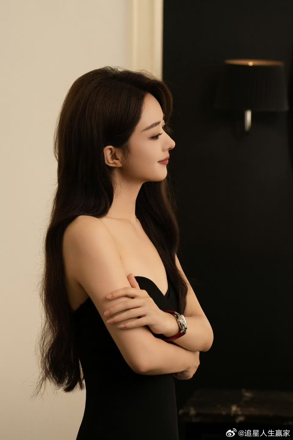 赵丽颖黑长直营业 今天是温柔风姐姐诶 抹胸很漂亮[期待][期待][期待]想看姐走红毯
