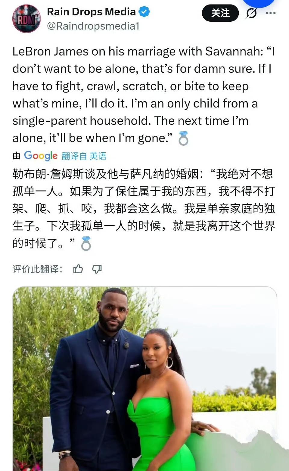 詹姆斯真是好男人,对婚姻忠诚爱老婆一辈子。 都说黑人球星花心,很多都不结婚玩一辈子。 詹姆斯就没有任何绯闻,我记得去年他手滑给了一位女网红点赞,女网红晒出图片被广大网友骂死了! 老詹只会换球队,对家人,对老婆,对兄弟都非常好,不愧是篮球界的偶像![赞]