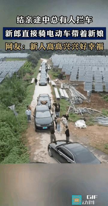 新郎计谋高,金蝉脱壳 婚车刚到村子路口,就被几个男子拦下,有的要一条华子,有的要一个红包,不给香烟和红包,就不让走。 新郎下车给他们理论了半天,给他们撒了喜糖和香烟,他们说每人要一条华子,否则不能从这里走。 时间已经不早了,新郎着急上火,一点办法都没有。就在这时,一个骑着红色电车的熟人从此路过,新郎喜出望外,像见到了救星一样,给他拿了一包喜糖,然后说明了自己的想法,借用他的电车。 新郎和新娘意见一致,新郎骑着电车,新娘坐在后边,高高兴兴地回家举行婚礼。 拦车的男子尴尬了,一分钱也没有要到,看到新郎新娘另辟蹊径,几个人灰溜溜的走了。 新郎做的很好,没有惯着这些人,他们不是“讨喜”,他们是“勒索”。 本来结婚是大喜的日子,他们利用“讨喜”,想敲诈勒索。新郎果断变通方式,骑着电车回家入洞房,让这些人一分钱也得不到。 新郎和新娘计谋高,放弃婚车金蝉脱壳。让财迷心窍的人,狗咬猪尿泡空欢喜。 朋友们,你们觉对此事怎么看?欢迎讨论! 声明(视频来源于网络,侵权联系删除)