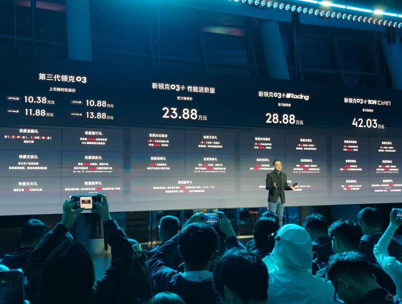 领克03 家族上市,价格算是砸到地板价,现款终端优惠也没这么便宜,这次高配版还给到了千里H3智驾,NOA+小蓝灯;新款 2.0T 发动机马力提升到 272 匹,售价仅为13.88万。此外,03+售价23.88万,Racing售价28.88万,TCR售价42.03万。【来自懂车帝车友圈】