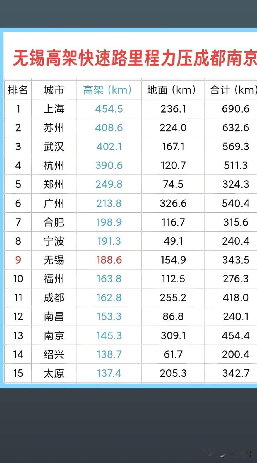 苏州高架快速路稳居全国第二,仅次于上海,苏州就是有钱,疯狂基建。 这就是实力,比很多一二线城市还高。就这还天天堵车。 估计苏州人口绝对有1400万+,世界工厂,16万家工厂企业,遍地工厂。