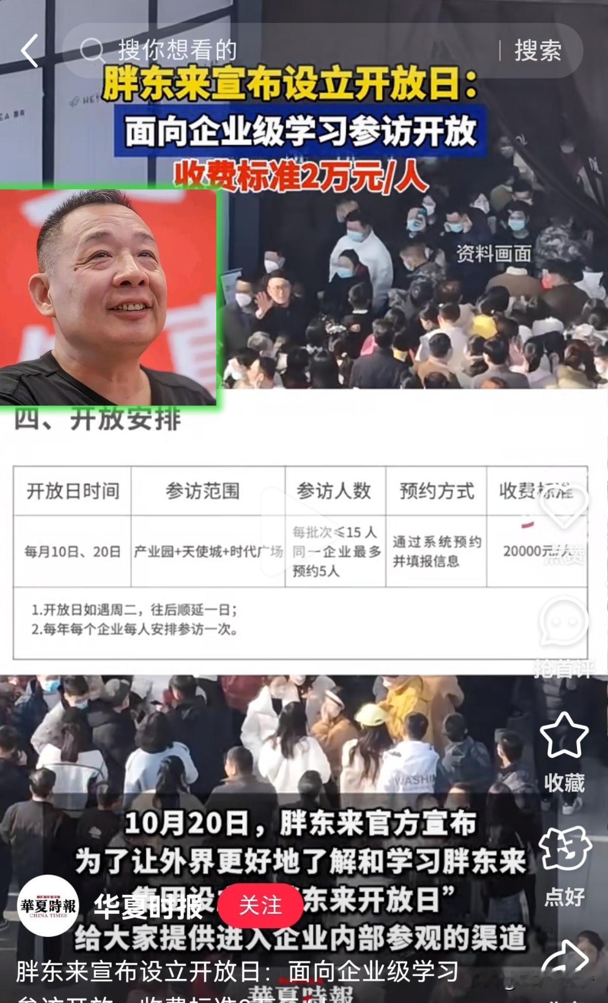 我估计,胖东来这下又赢麻了,于东来居然收费2万一个人去参观他的企业,一个月只