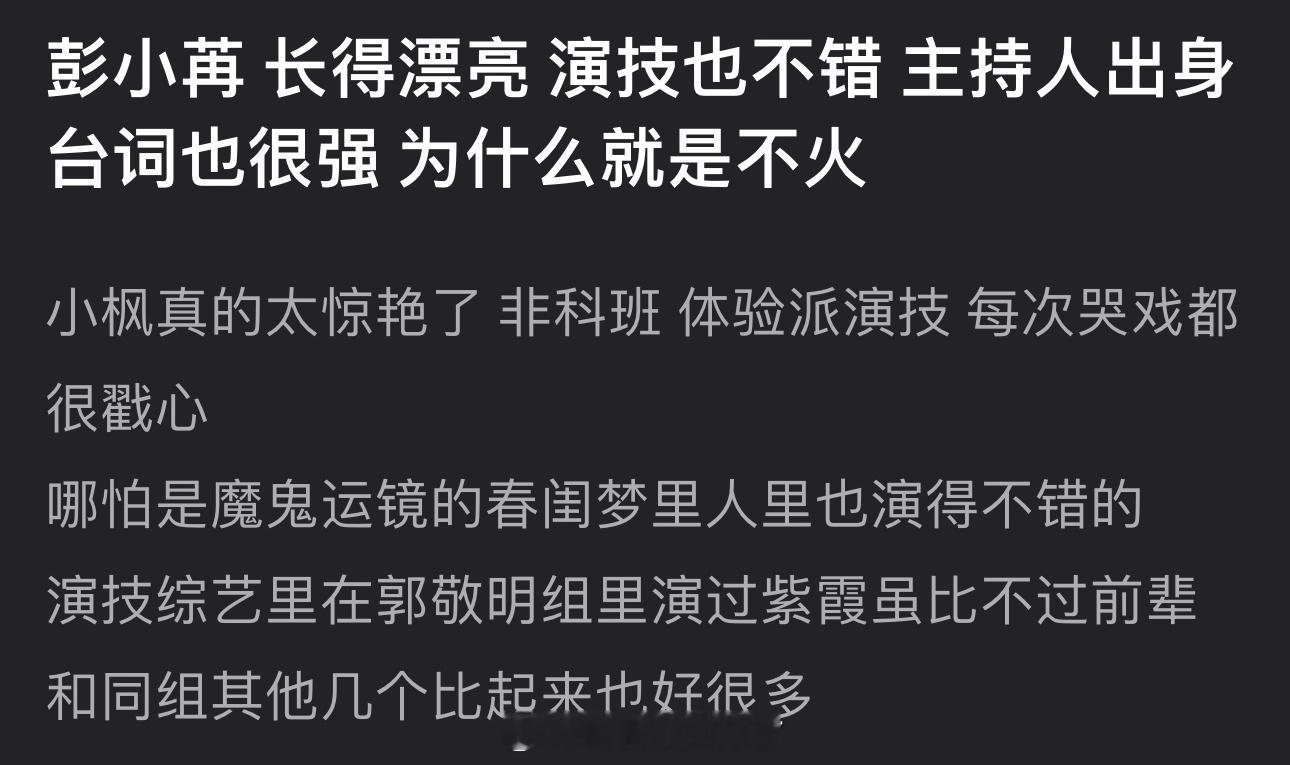 彭小苒长得漂亮演技也不错,主持人出身台词也很强,为什么就是不火?